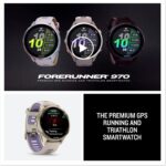 Garmin® Forerunner® 970, Premium GPS Running and Triathlon Smartwatch, AMOLED Display, Built-in LED Flashlight, Soft Gold Titanium with French Gray Case and French Gray/Translucent Indigo Band