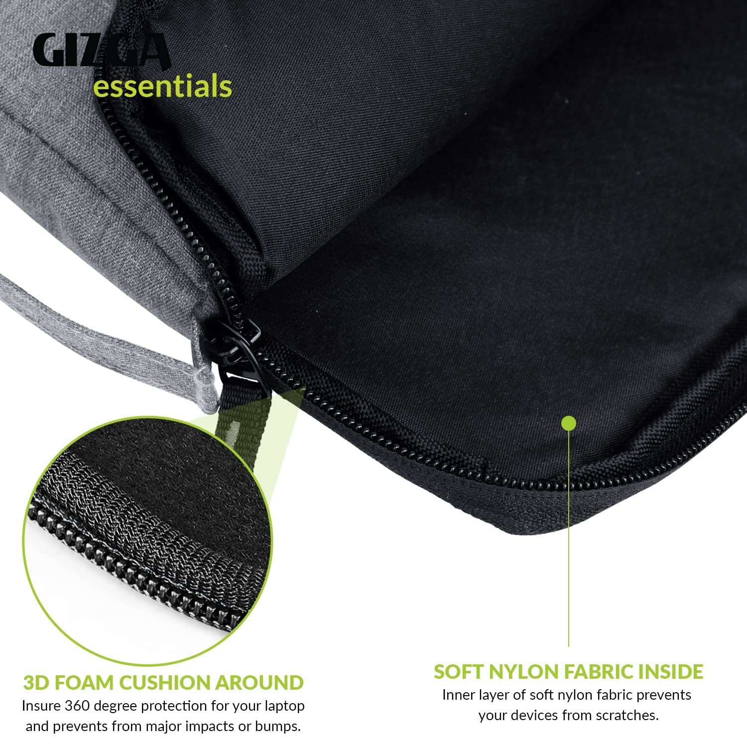 Gizga Essentials 13.3 Inch Laptop Sleeve Case Cover Bag with Extra Pouch, Front Pocket & Handle| Slim & Water-Resistant Nylon Fabric with Shockproof Foam Padding, Soft Lining & Premium Zipper (Grey)