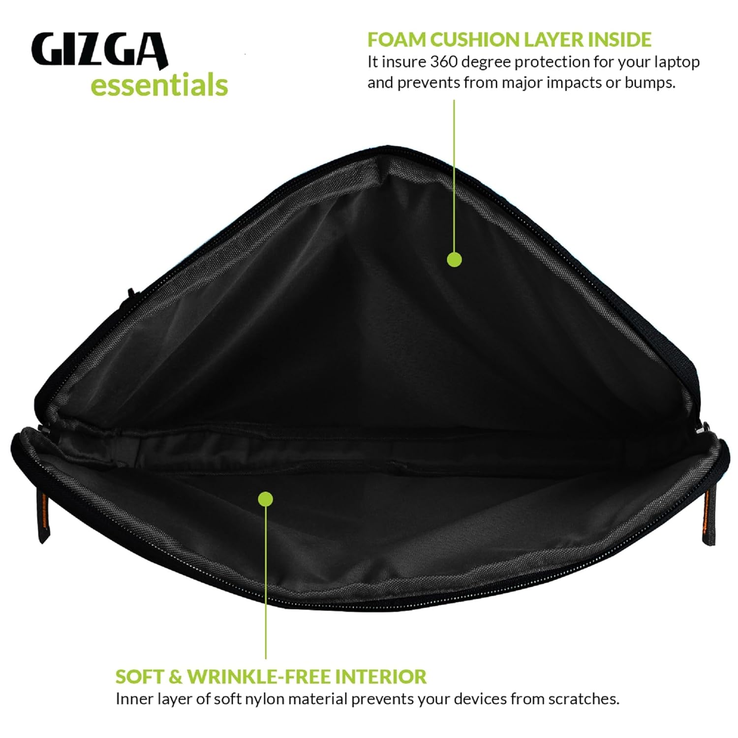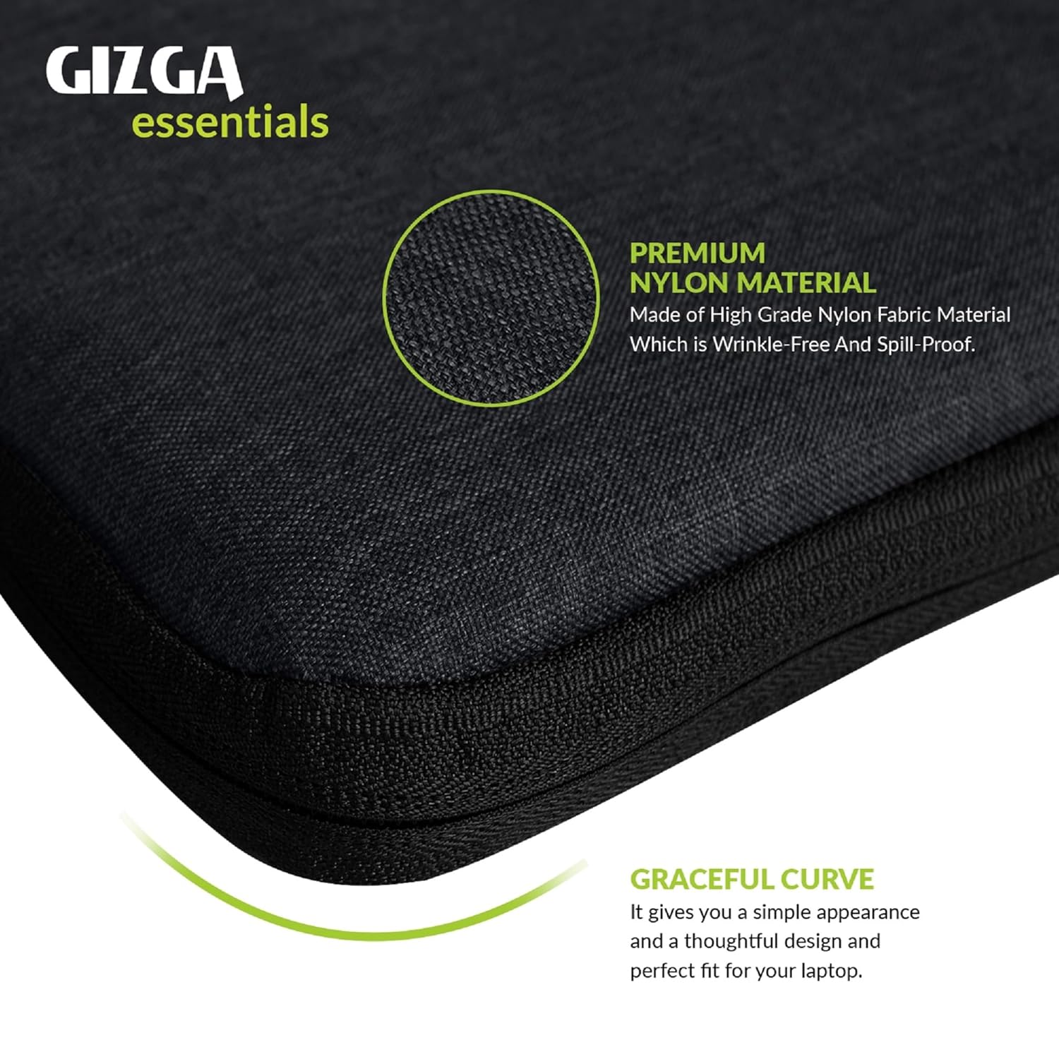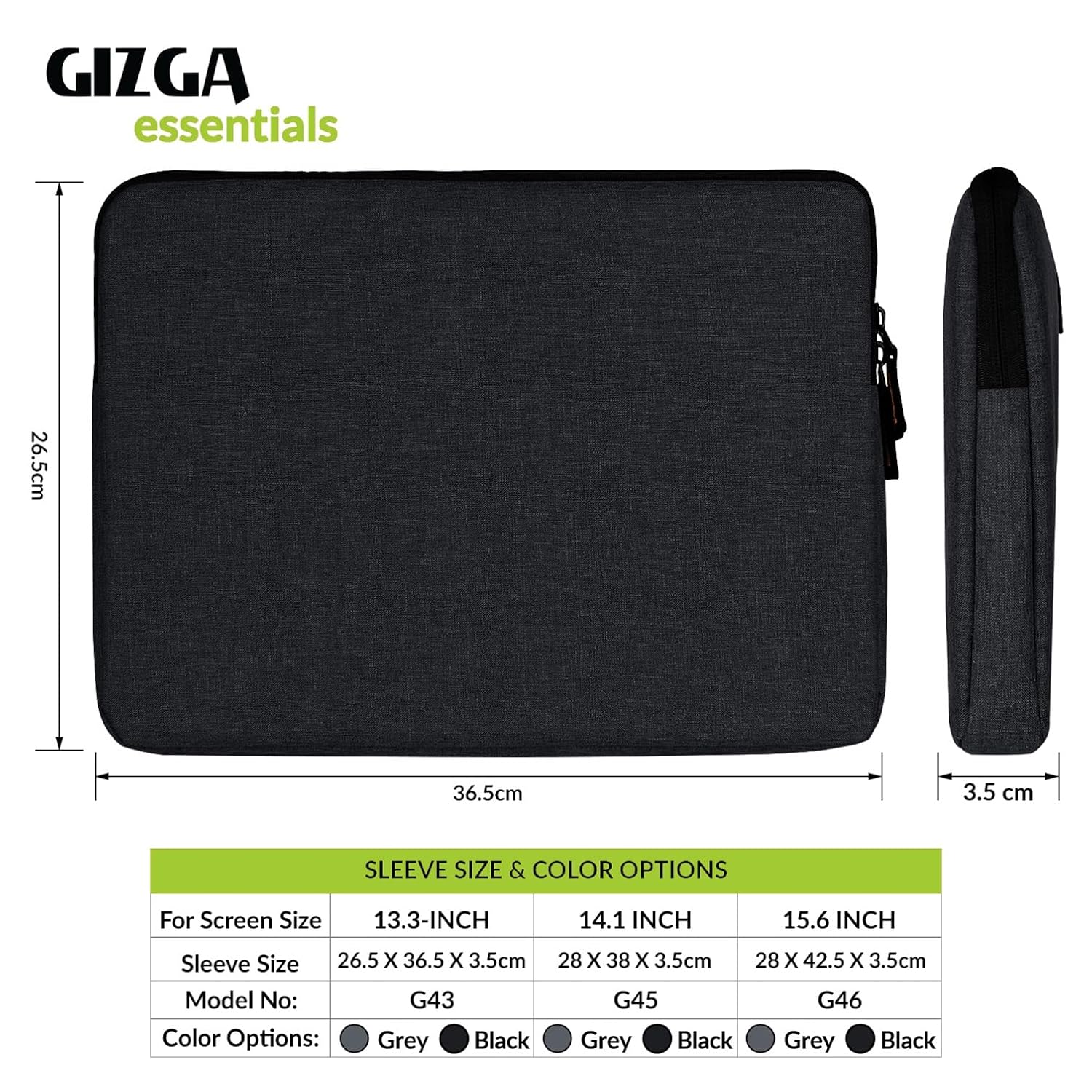 Gizga Essentials 13.3Inch Laptop Sleeve Case Cover Pouch Bag with Front Pocket| Slim & Water-Resistant Nylon Fabric with Shockproof Foam Padding, Soft Lining & Premium Zipper Closure (Black)