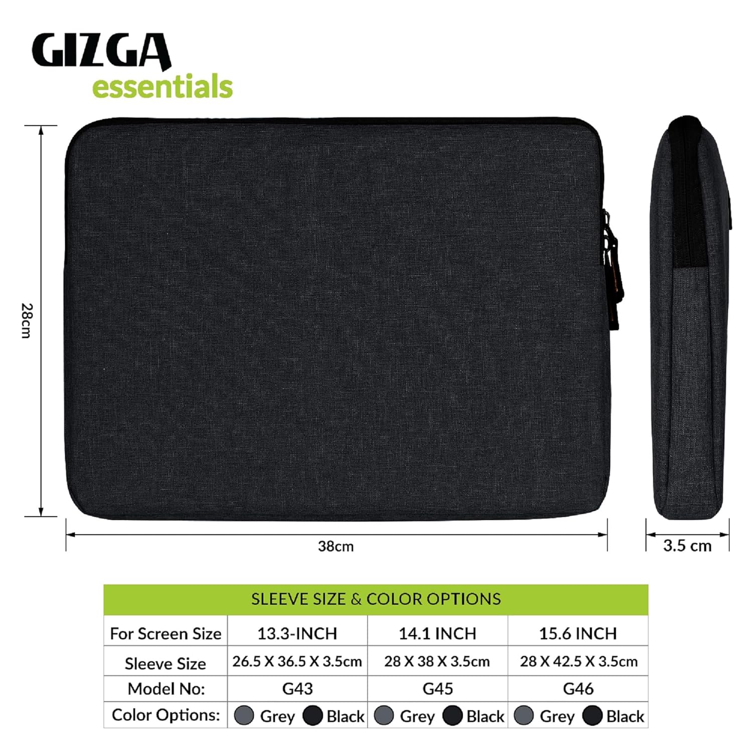 Gizga Essentials 14.1 Inch Laptop Sleeve Case Cover Pouch Bag with Front Pocket| Slim & Water-Resistant Nylon Fabric with Shockproof Foam Padding, Soft Lining & Premium Zipper Closure (Black)