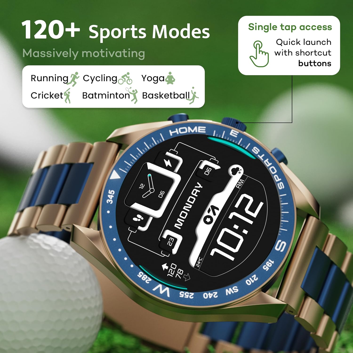 What a premium quality and outlook, steel strap, touch screen, comfortable to wear, accuract , bp heartbeat mapping, sound quality ANd connectivity also very smooth, quick Smart sensor, best performance, easy blootooth connectivity, charging fast and easy to plug in.Waterproof also, happy with thatAnd also comes with strap adjustable screw, which is really helpful. And lots of wallpaper and themes available in app.
