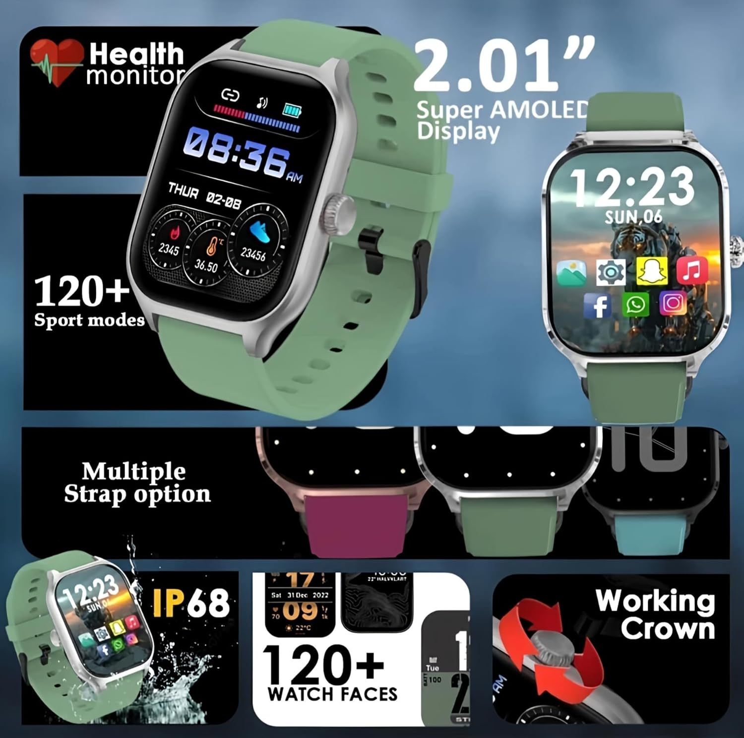 🖥️ 2.01-Inch Large Display – Huge full-touch screen for easy viewing and navigation