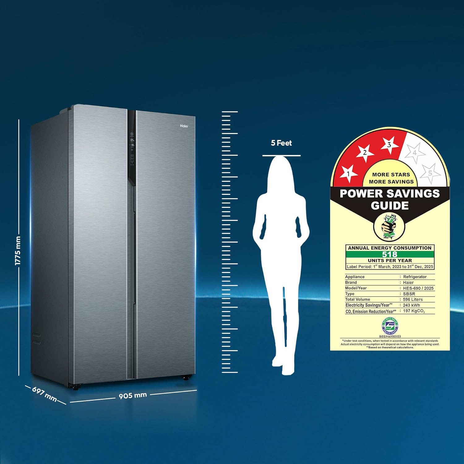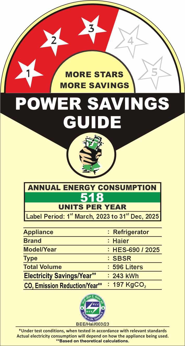 Energy Rating : 3 Star Energy Efficiency | Annual Energy Consumption: 518 Kilowatt Hours Per Year