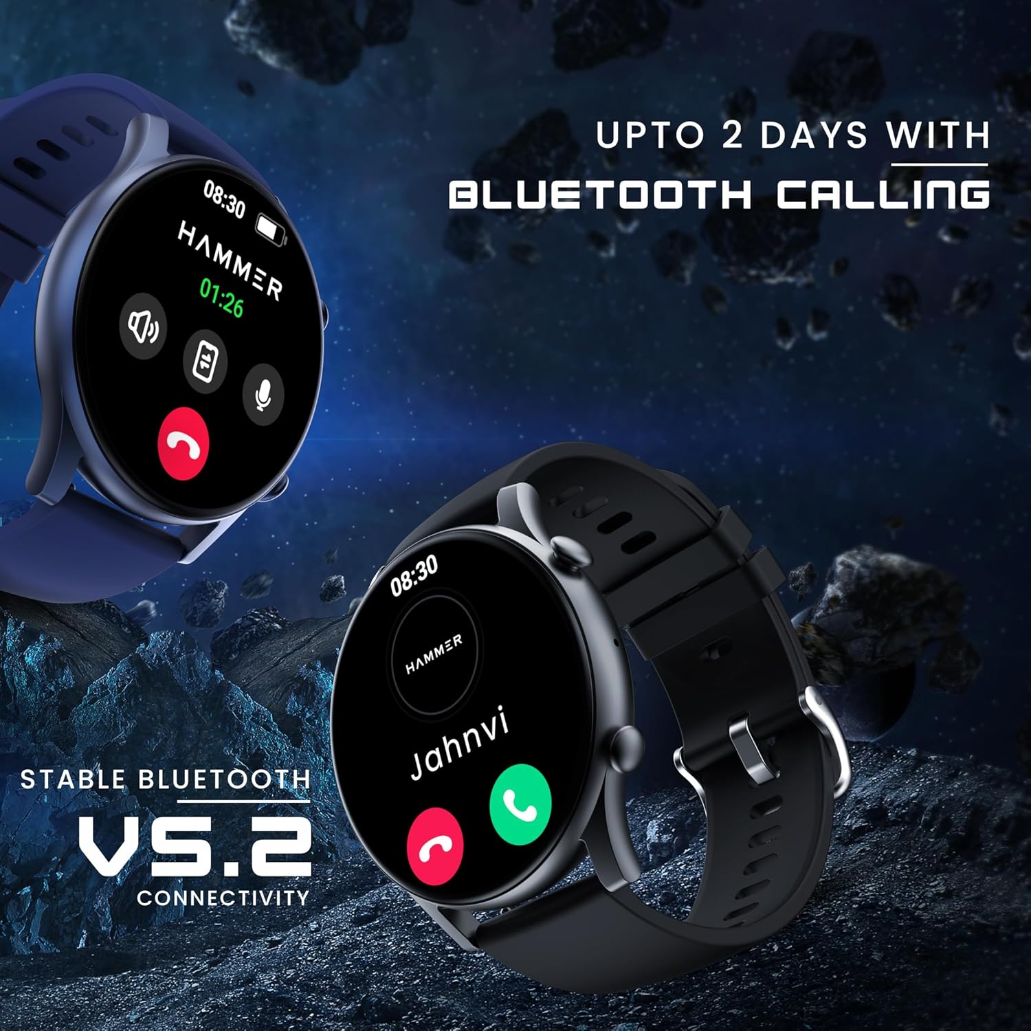 Crystal Clear Bluetooth Calling: With Bluetooth version 5.2 for stronger connectivity, and high tech built-in speaker & mic, Hammer Glide is a calling smart watch with a dial pad that allows you to do clear and uninterrupted Bluetooth calling, with add-on features such as vibration, ringing and volume controls on your smartwatch. This is the one intelligent smart watch that can be used to do calls anytime and anywhere