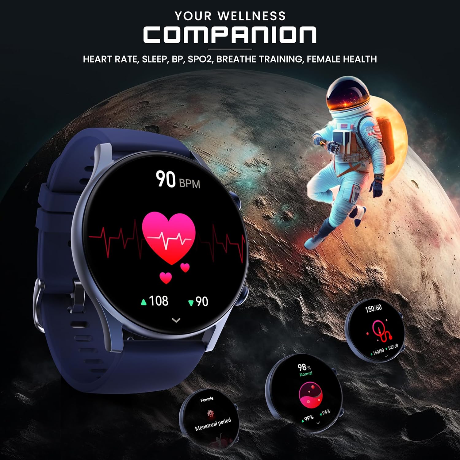 Health and Fitness Tracking: The smartwatch for women and men comes with sports modes, sedentary and drink water reminders, SpO2, and heart rate monitor, making it the perfect smart watch for women latest in fitness technology
