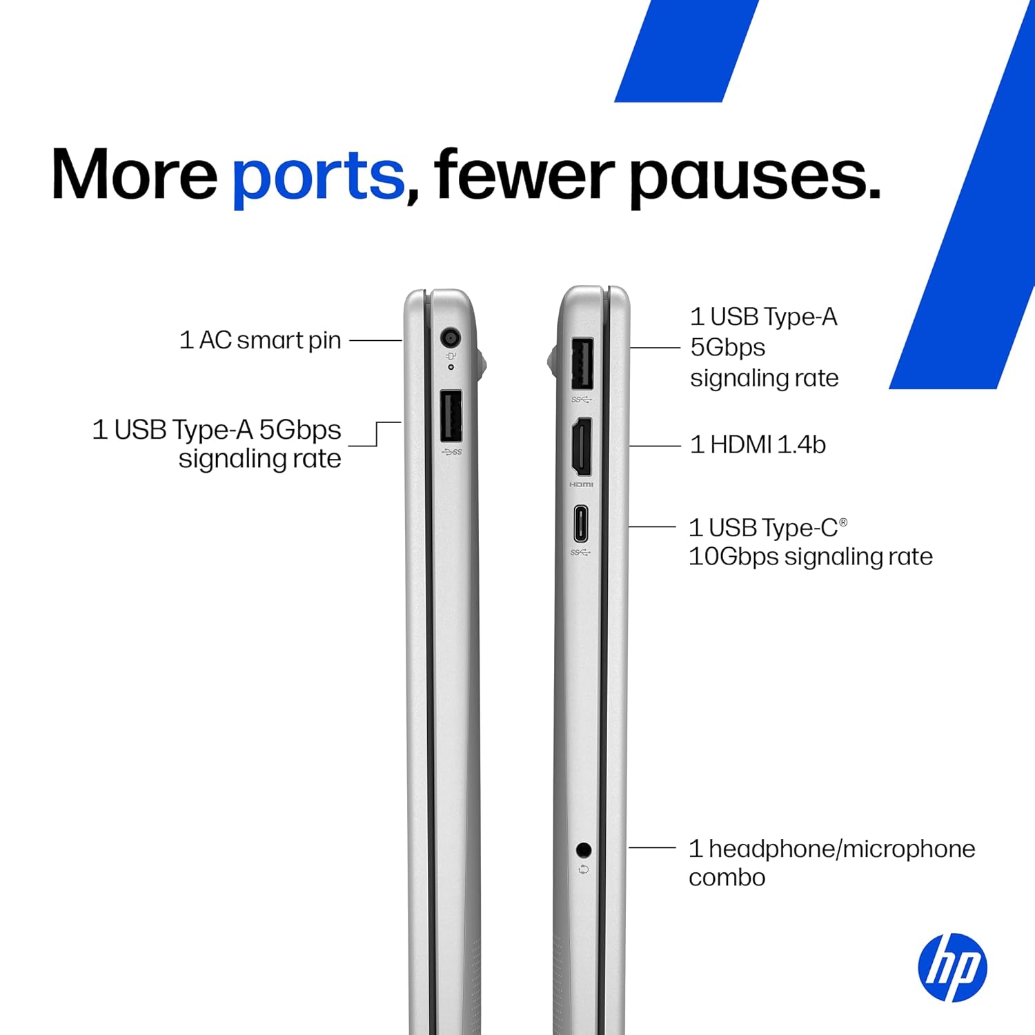 Ports & Connectivity :1 USB Type-C 5Gbps signaling rate (supports data transfer only and does not support charging or external monitors); 2 USB Type-A 5Gbps signaling rate; 1 AC smart pin; 1 HDMI 1.4b; 1 headphone/microphone combo; Connectivity: Realtek Wi-Fi 6 (2×2) and Bluetooth 5.4 wireless card