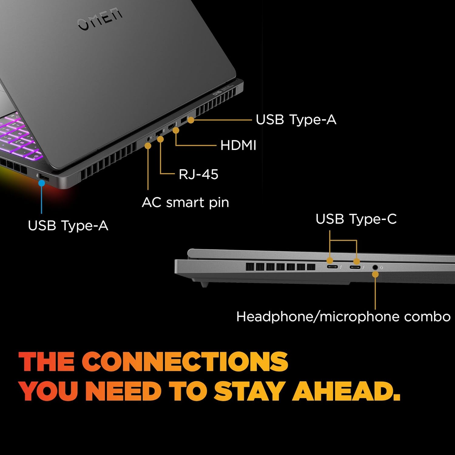 Wi-Fi 7, Bluetooth 5.4. Ports: 2x USB-C (USB4, 40Gbps), 2x USB-A (10Gbps), HDMI 2.1 (4K 120Hz/8K 60Hz), RJ-45, combo audio jack. Everything you need for blazing data, external GPUs, and 4K/8K displays.