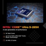 Processor, Memory & Storage: Intel Core Ultra 9 285H (up to 5.4 GHz with Intel Turbo Boost Technology, 24 MB L3 cache, 16 cores, 16 threads)| Memory: 32 GB DDR5-5600 MT/s (2 x 16 GB)| Storage: 1 TB PCIe Gen4 NVMe M.2 SSD
