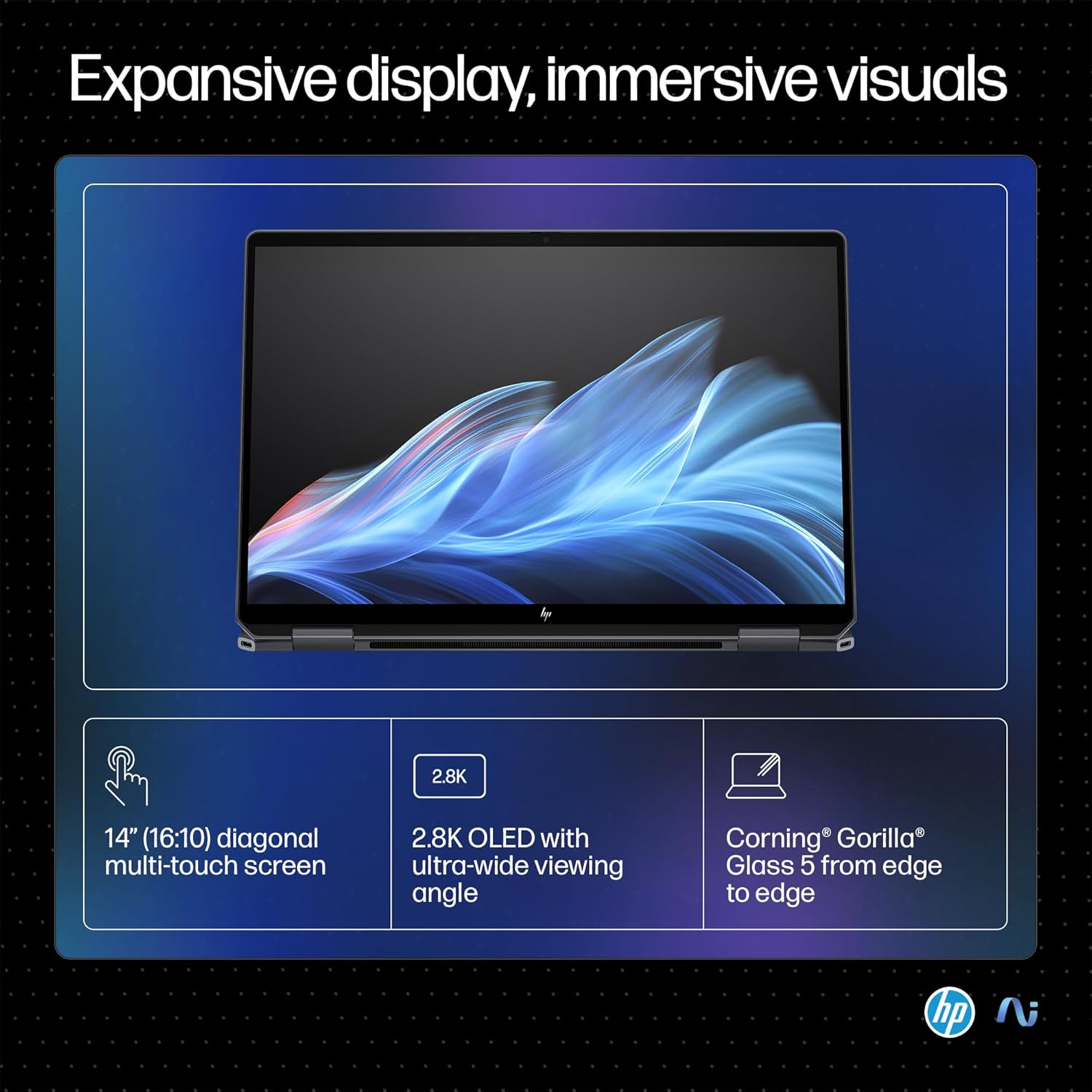 HP OmniBook Ultra Flip (Previously Spectre) Intel Core Ultra 7 256V 47 Tops (16GB LPDDR5X, 1TB SSD) OLED, 500 nits,14”/35.6cm, Touch 2-in-1, Win11, Office21, Gray,1.34kg, fh0026TU Next Gen AI Laptop