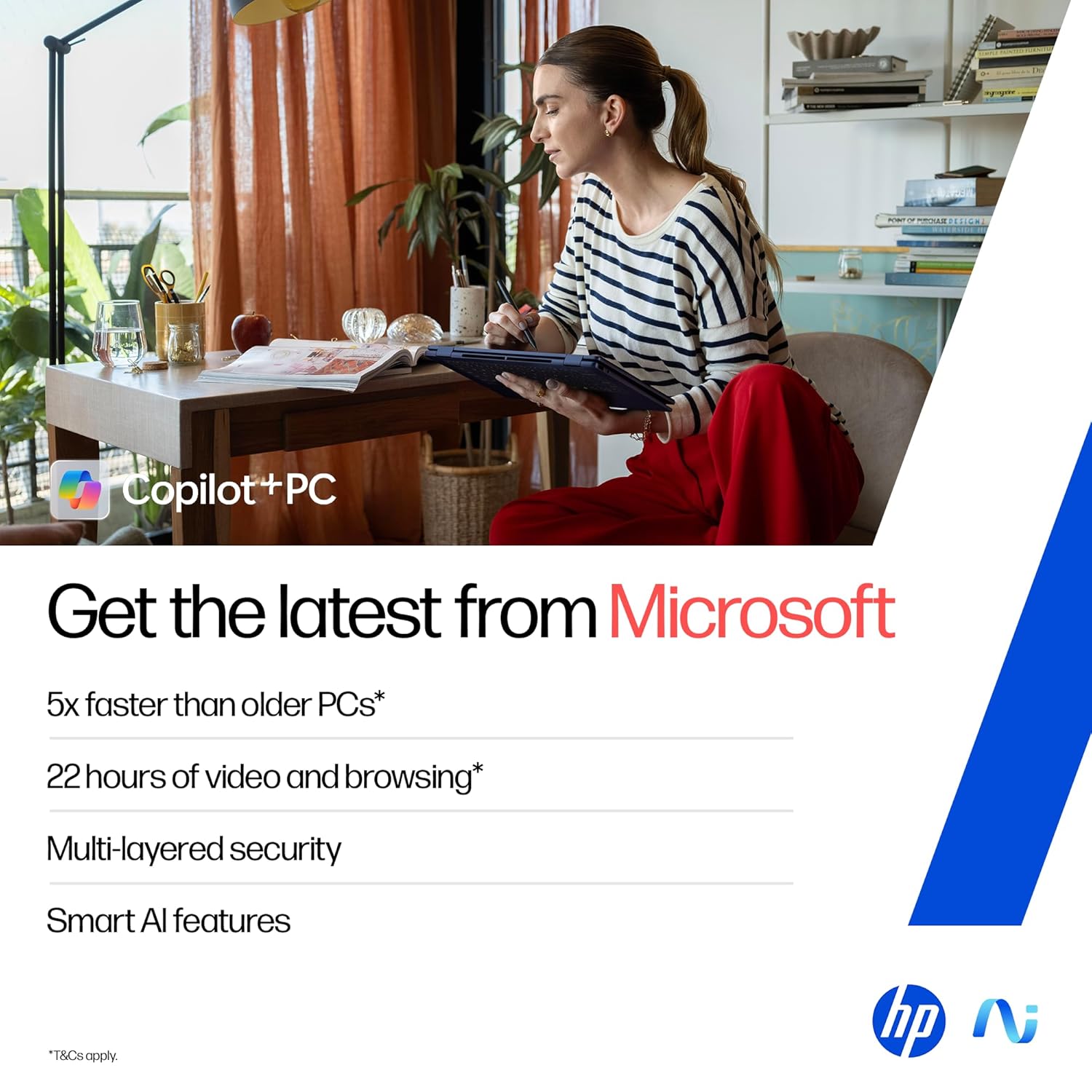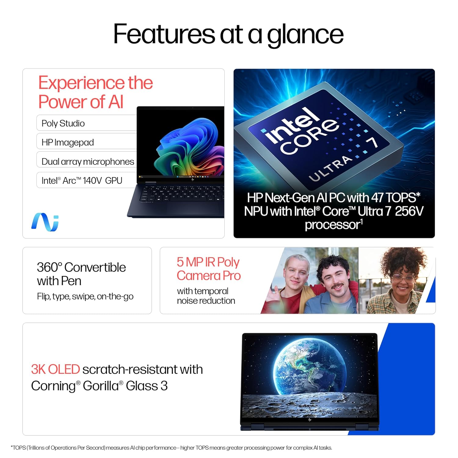 HP Omnibook X Flip (Previously Envy) Intel Core Ultra 7 256V, 40 Tops (16GB LPDDR5x, 1TB SSD) 3K OLED, 120hz, 14”/35.6cm, 2-in-1, Win11, M365* Office24, Blue, 1.38kg, fm0100TU Next Gen AI Laptop