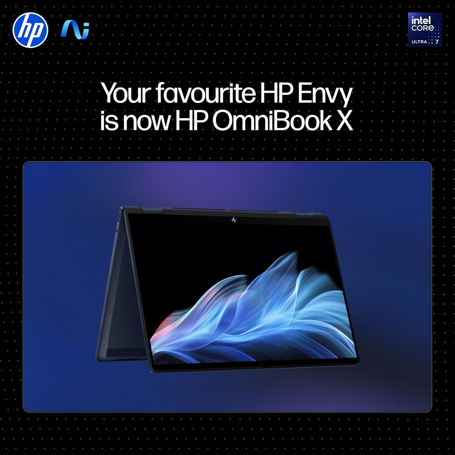 HP OmniBook X Flip (Previously Envy) Intel Core Ultra 7 256V 47 Tops (16GB LPDDR5X, 512GB SSD) 3K,OLED, 0.2ms,14”/35.6cm Touchscreen 2-in-1 Win11,Office24, Blue, 1.38kg, fm0026TU, Next Gen AI Laptop