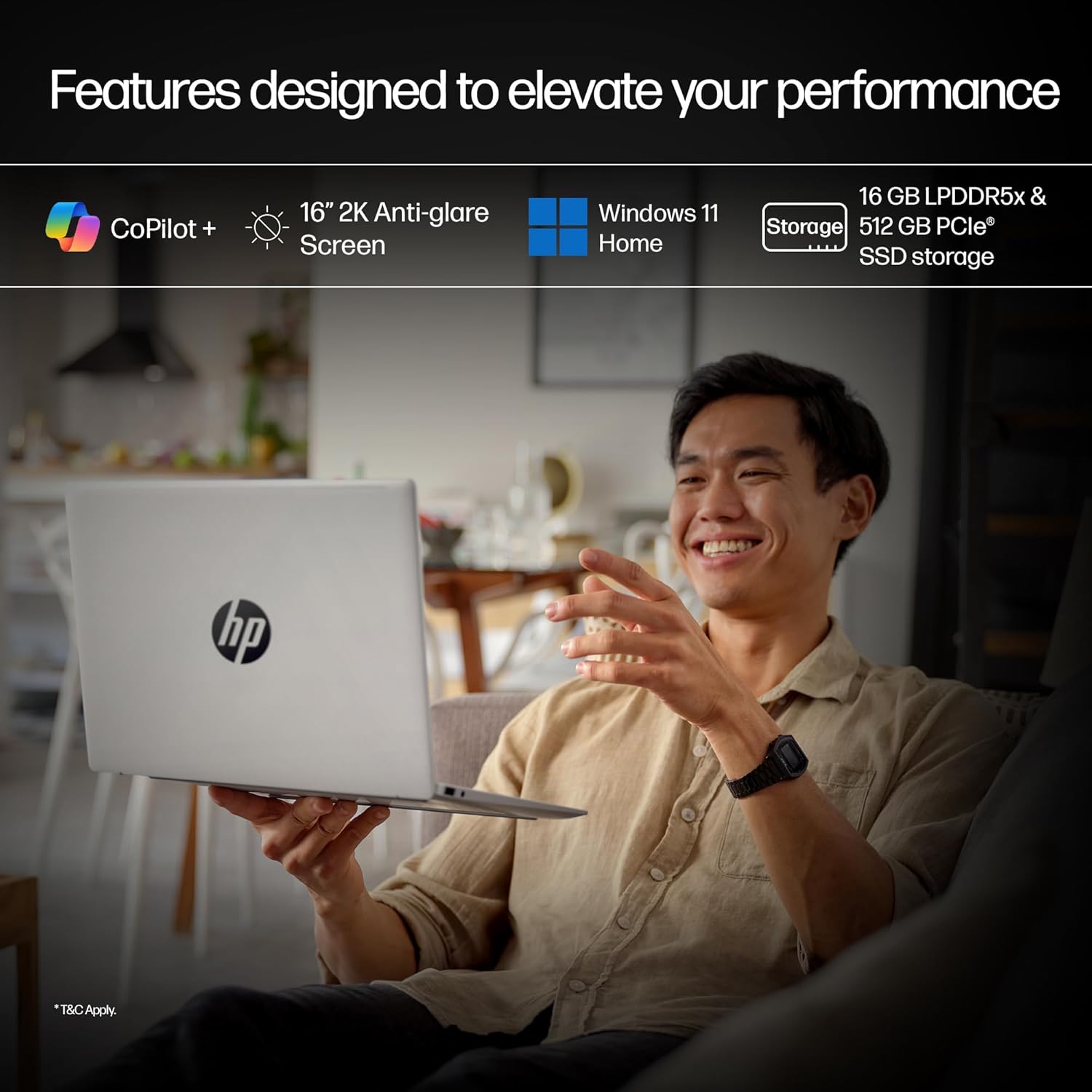 HP Smartchoice OmniBook 5 (Previously Pavilion) 50 TOPS, AMD Ryzen AI 7 350 (16GB LPDDR5X, 512GB SSD) WUXGA 2K, Touch, 16”/40.6cm, Win11,Office24, Silver, 1.8kg, ag1048au, Next-Gen AI Copilot+ Laptop