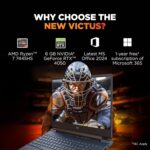 HP Victus, AMD Ryzen 7 7445HS, 6GB RTX 4050, 16GB DDR5(Upgradeable) 512GB SSD, 144Hz, IPS, 300nits, FHD, 15.6”/39.6cm, Win11, M365* Office24, Blue, 2.29kg, fb3118AX, Backlit, DTS Audio, Gaming Laptop