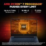Processor, Memory & Storage: AMD Ryzen 7 7445HS (up to 4.7 GHz max boost clock 16 MB L3 cache, 6 cores, 12 threads| Memory: 16 GB DDR5-5600 MT/s (1 x 16 GB| Storage: 512 GB PCIe NVMe M.2 SSD