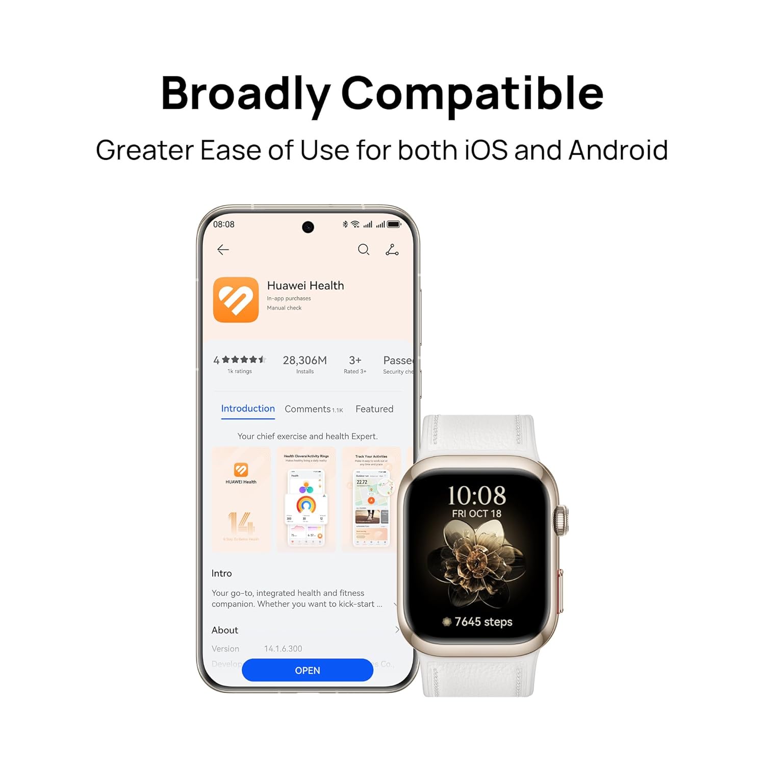 Huawei Watch D2 is compatible with both iOS and Android, for greater ease of use.