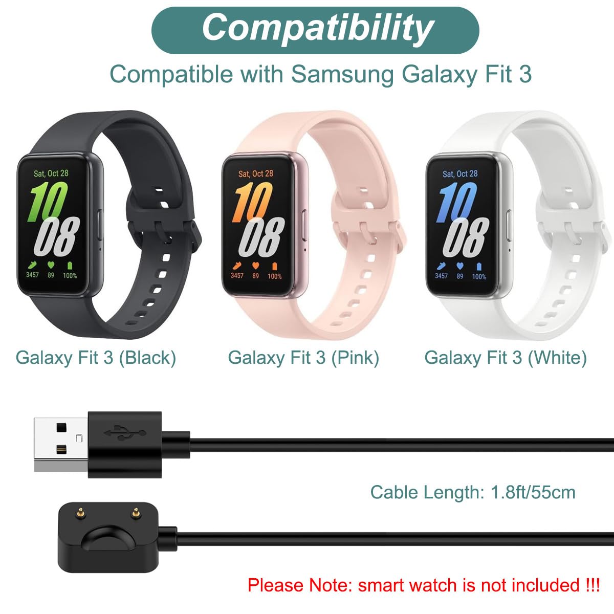 ▶Compatibility: This charger compatible with Galaxy Fit 3 SM-R390 smart watch.【❎Not fits for Galaxy Fit 2/Galaxy Fit.】