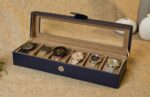 Leather World Engineered Wood Watch Box Holder Organizer Case In 6 Slots Of Watches For Men And Women With Transparent Display (Blue)