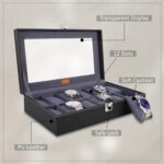 LEDO Men’s and Women’s Watch Box Holder Organizer Case In 12 Slots of watches In PU Leather with Black & Gray