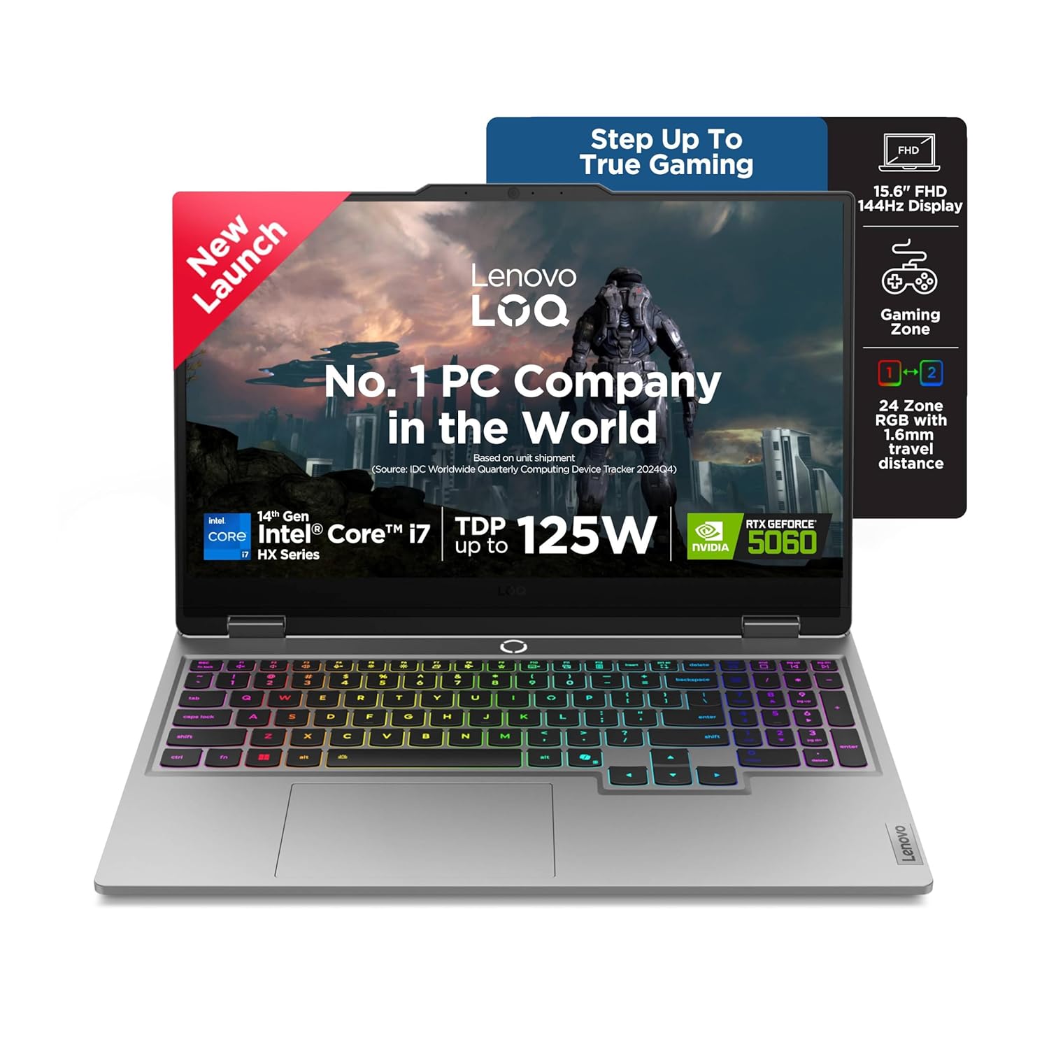 Lenovo LOQ 2025 Intel Core i7-14700HX| NVIDIA RTX 5060 8GB (32GB RAM/1TB SSD/144Hz Refresh Rate/572 AI TOPS/15.6″ (39.6cm)/Windows 11/Office 2024/3 Mon. Game Pass/Grey/2.4Kg), 83JE00U3IN