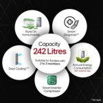 Capacity 242 litres: Suitable for families with 2 to 3 members I freezer capacity: 62 L; fresh food capacity (Fridge): 180 L