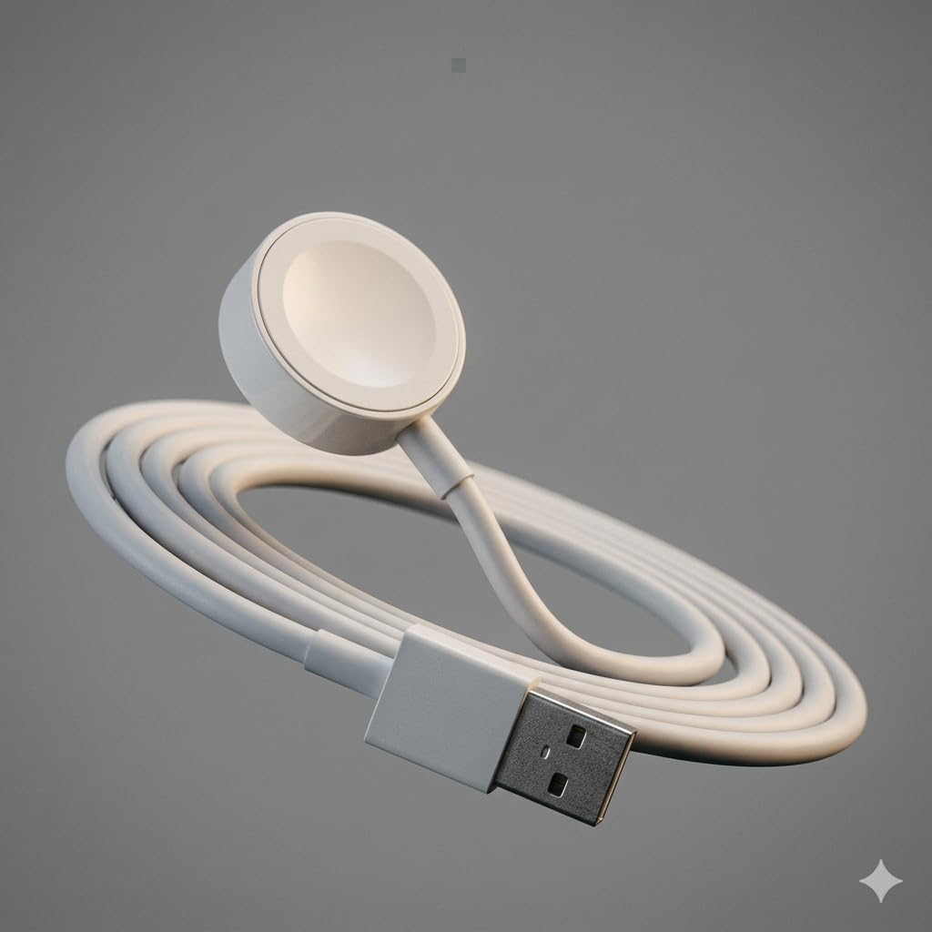 Keep your smartwatch powered up and ready to go with this sleek magnetic USB charging cable. Featuring a compact, circular magnetic charging disc on one end and a standard USB-A connector on the other, this charger offers a hassle-free, snap-on charging experience. The magnetic disc aligns effortlessly with your watch, ensuring a secure connection every time without fumbling with cables or ports. The generous cable length gives you the flexibility to charge your watch comfortably at your desk, bedside table, or while travelling. Its clean white finish and minimalist design blend seamlessly with modern interiors and tech setups. Lightweight and compact, this charger is easy to carry in your bag or luggage, making it an ideal travel companion. Simply plug the USB end into any compatible USB adapter or power bank and let the magnetic disc do the rest. A practical and reliable charging solution for everyday use.
