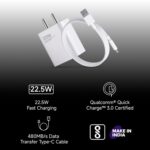 MI Xiaomi 22.5W Fast Charger with USB-C Cable, Quick Charge 3.0 Power Adapter Compatible with Redmi Note Series, Poco, Mi, Any Type C Devices – with Power Delivery (White)