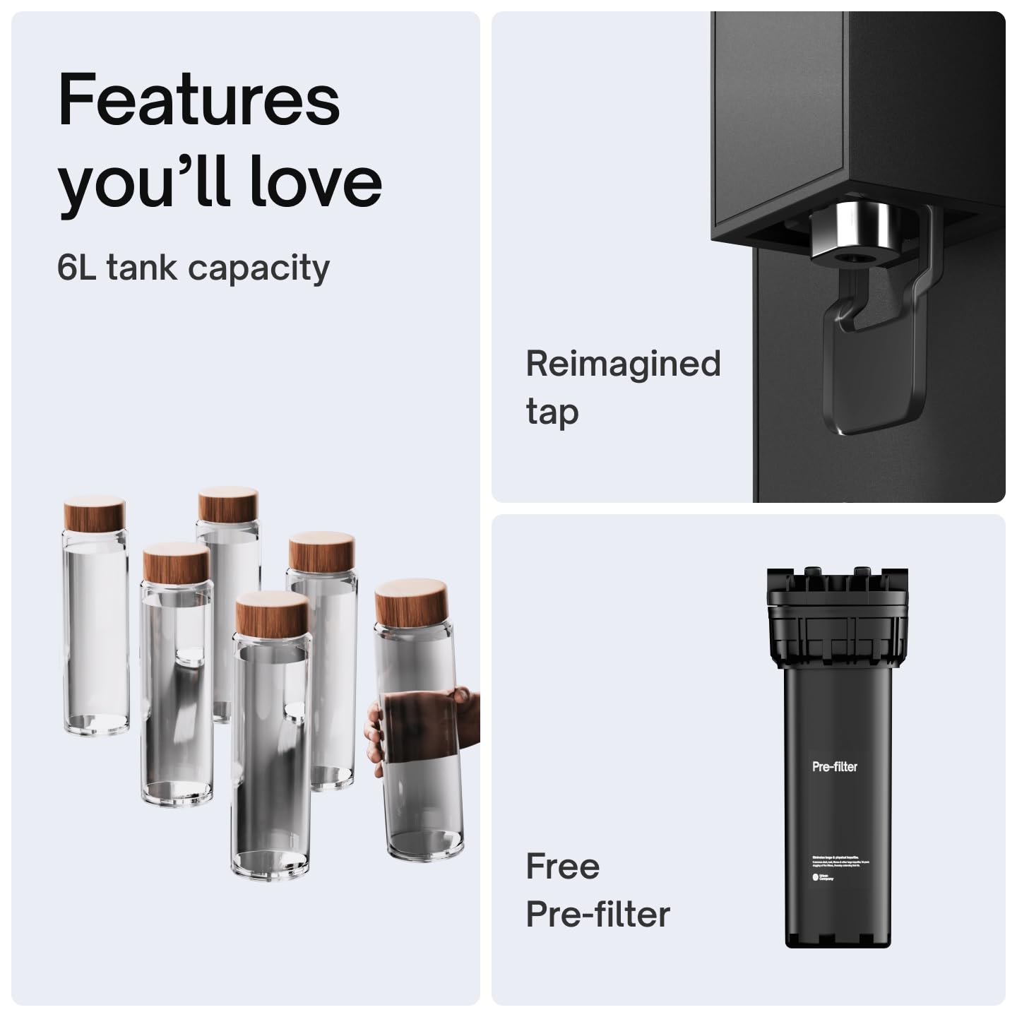 6 Litre Storage: Perfect capacity for a day. Food-grade tank keeps water safe for consumption. Suitable for home & office