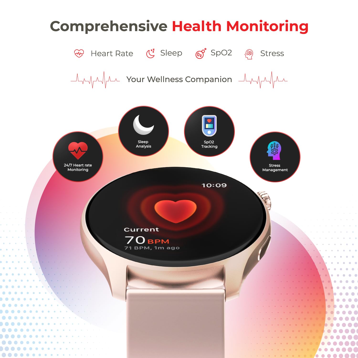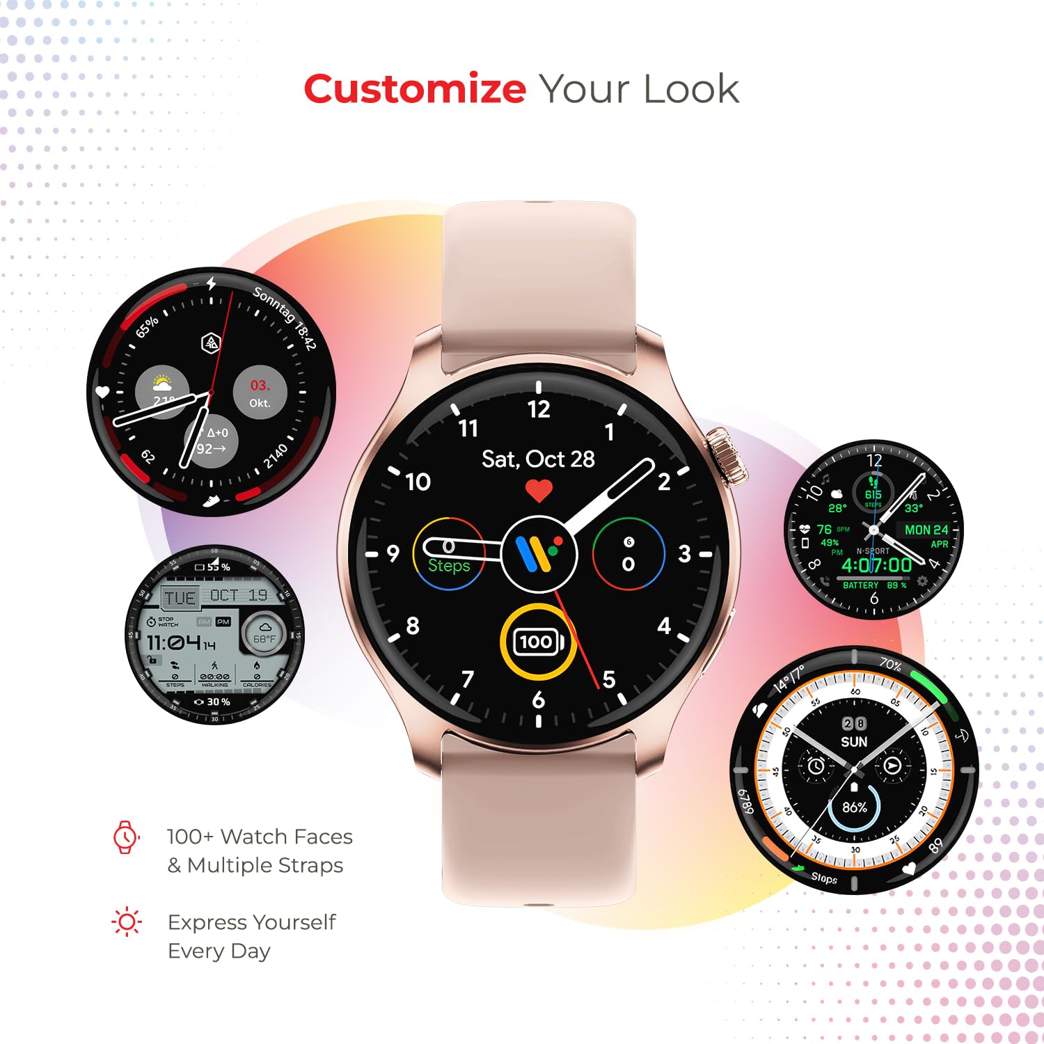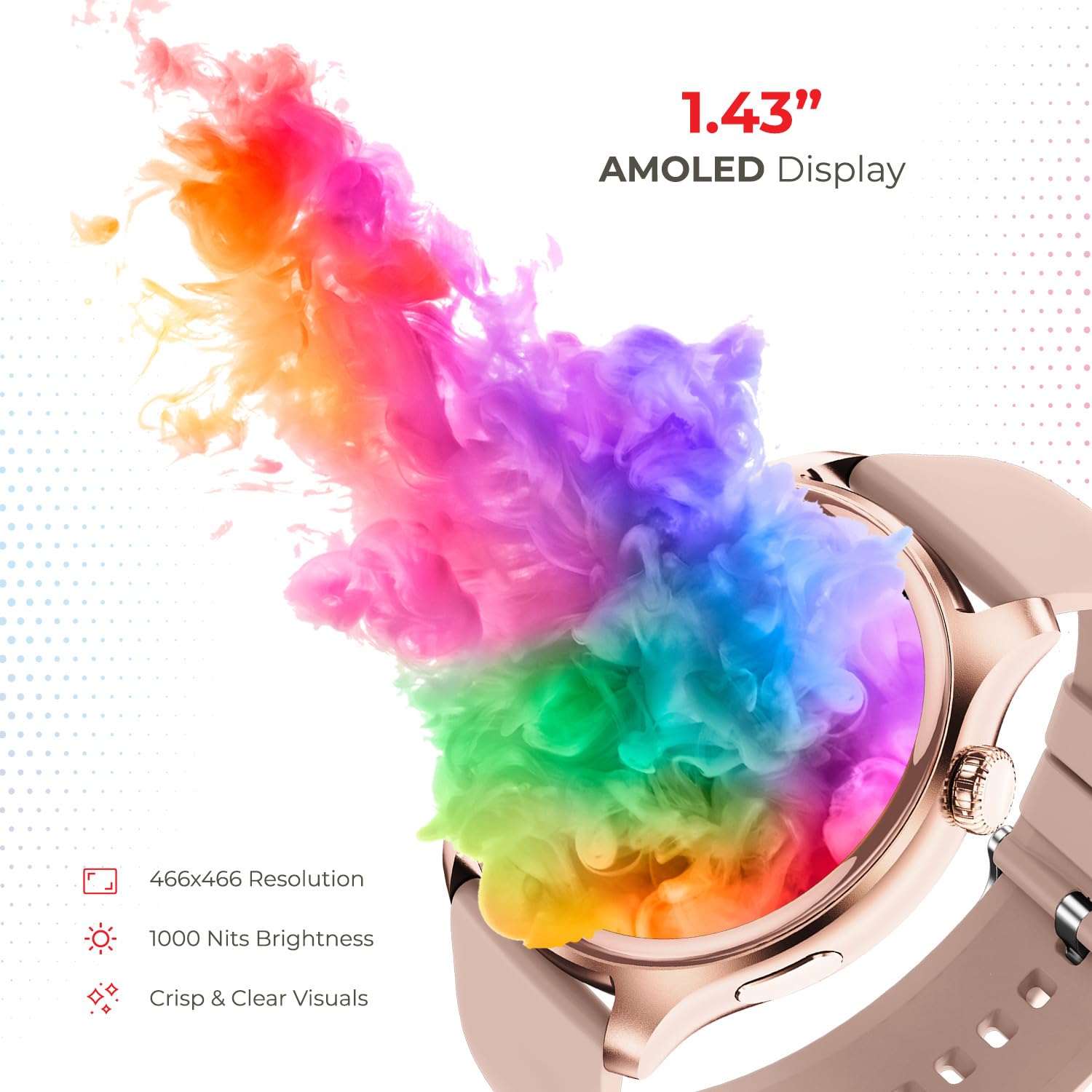 Nervfit Orion S1 Smartwatch with 1.43″ AMOLED Display, Functional Crown Control, Bluetooth Calling, AI Voice Assistant, IP68 Waterproof, Heart Rate & SpO2 Monitor, and 100+ Sports Modes – (Rose Gold)