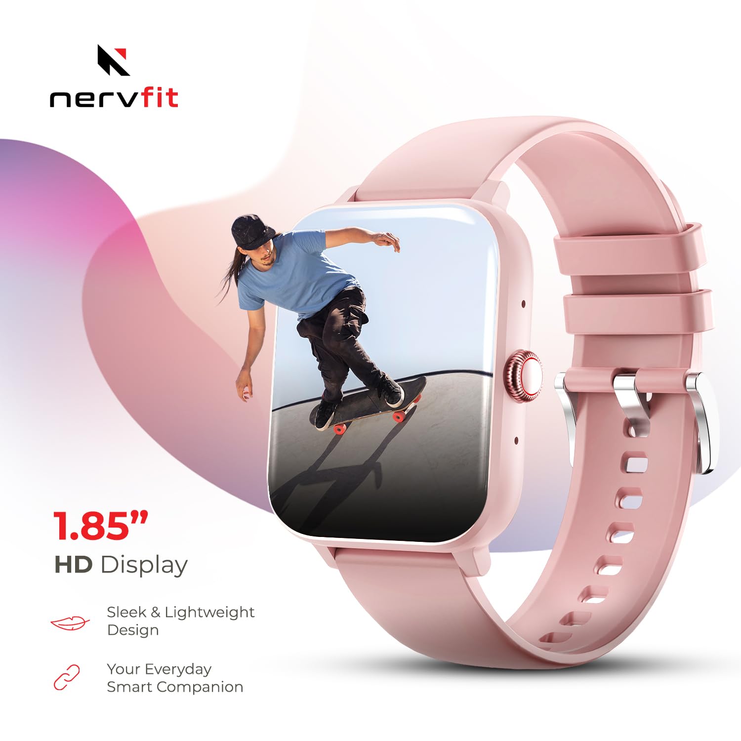 Nervfit Vibe Smartwatch with 1.85″ LED Display | Bluetooth Calling | Waterproof | Heart Rate & SpO2 Tracking | Sleep & Stress Monitor | 5-Day Battery | Sports Modes (Orchid Pink)