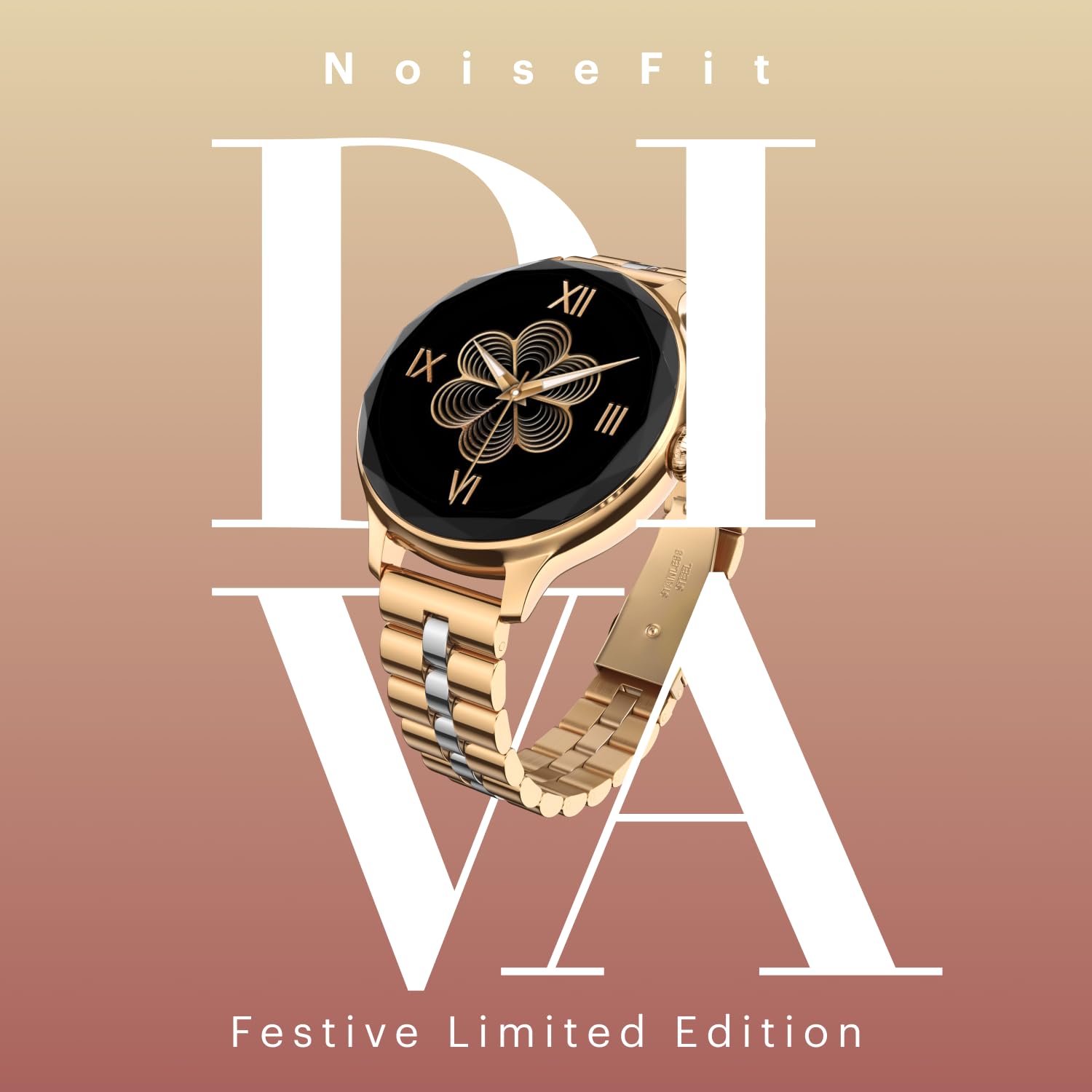 Noise Diva Smartwatch for Women with Diamond Cut Dial, Glossy Metallic Finish, AMOLED Display, New Metal Straps, 100+ Watch Faces, Female Cycle Tracker Smart Watch for Women (Metallic Rose Blend)