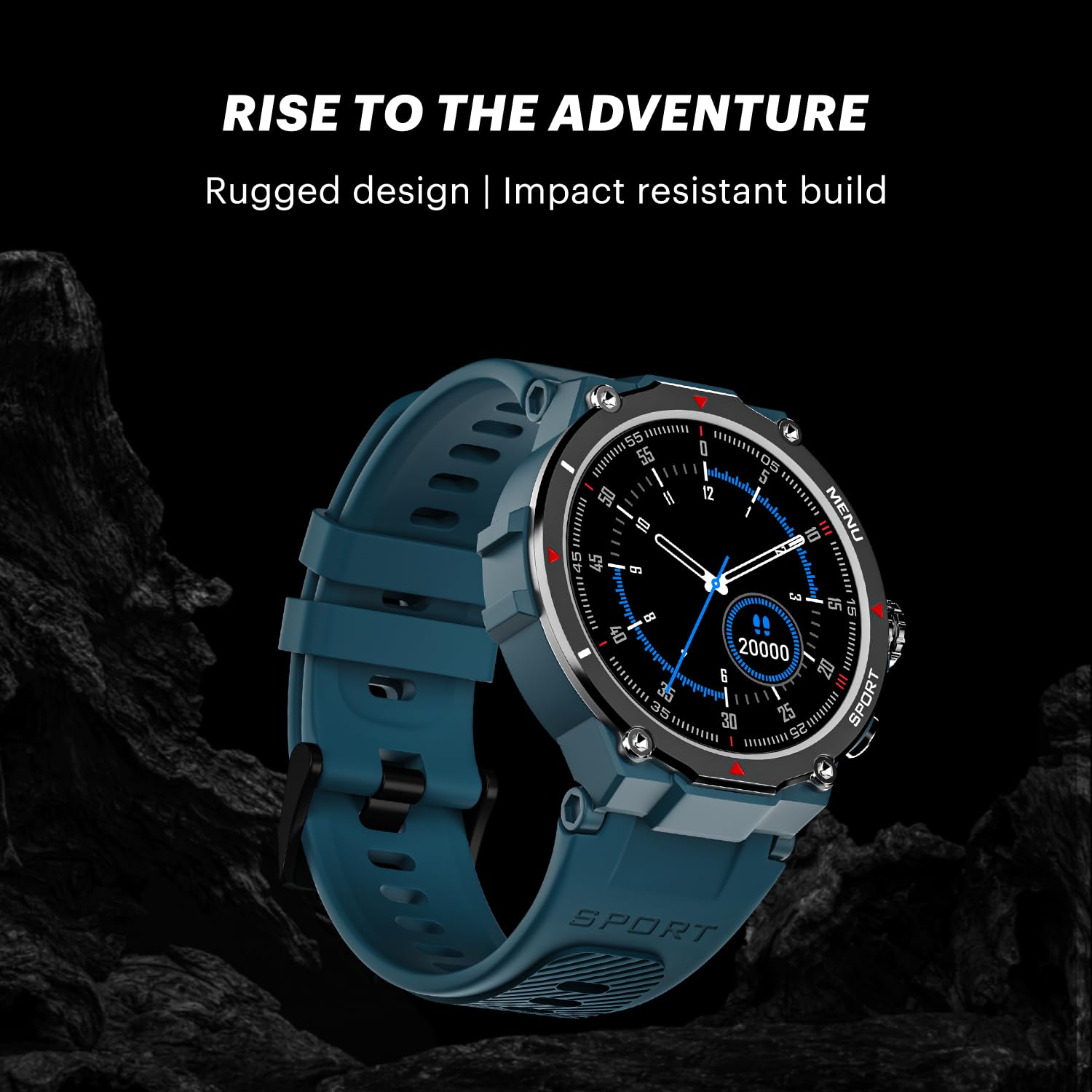 Sporty & rugged design: Featuring an impact-resistant build, the smartwatch is designed to be sporty and rugged.;Functional rotating crown: Navigate with complete efficiency with its functional rotating crown.; Bluetooth calling: Live hands-free by making calls directly from your wrist. You can access the dial pad, check your call logs and save 5 contacts on the watch.;1.32″ high resolution display: Experience bold and clear visuals on its high res display.