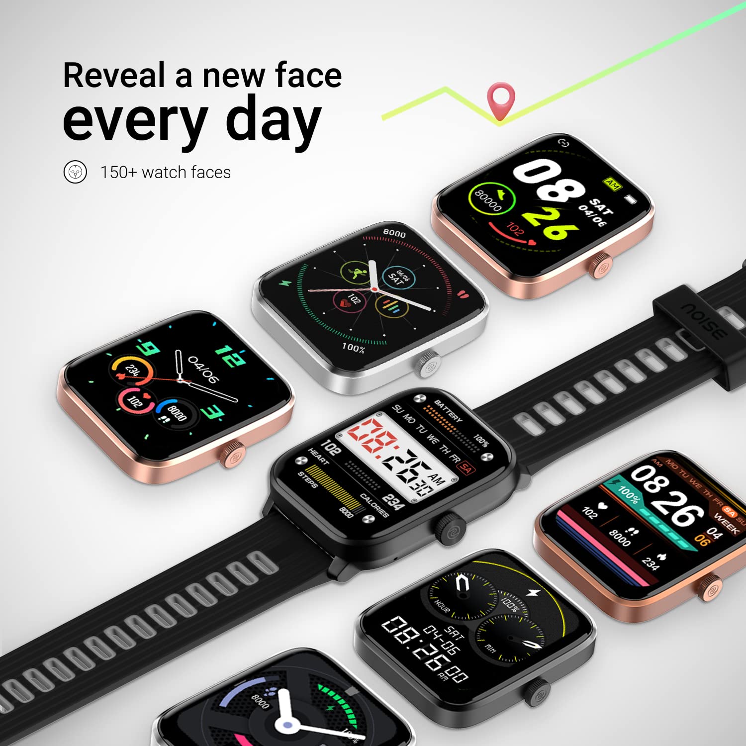 Noise Health SuiteTM: Take better care of your daily health with a series of health monitoring tools – Blood oxygen monitor, Sleep monitor, 24×7 heart rate monitor, Stress measurement, Breathing practice & Female cycle tracker.