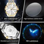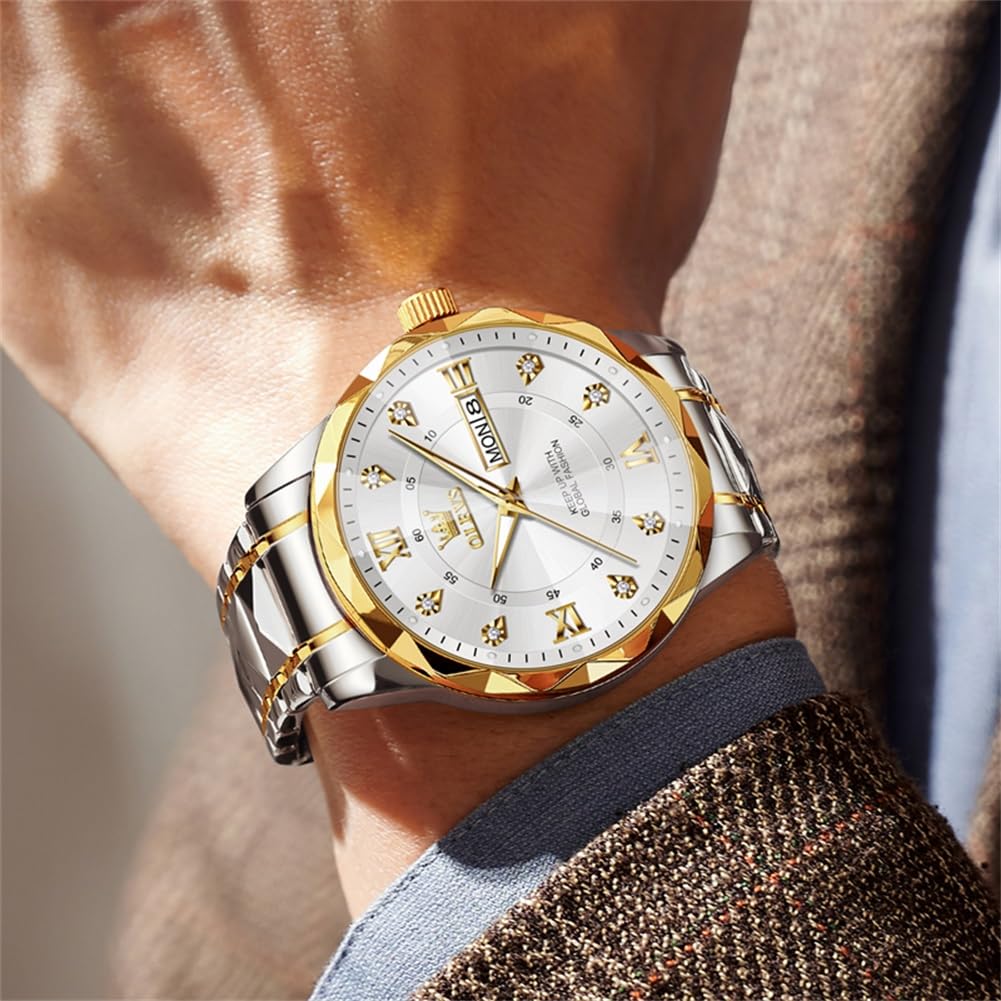 OLEVS Men’s Business Watch Gold Blue with Large Easy-Read Analog Quartz Date Display Luxury Stainless Steel Band Waterproof Luminous Hands