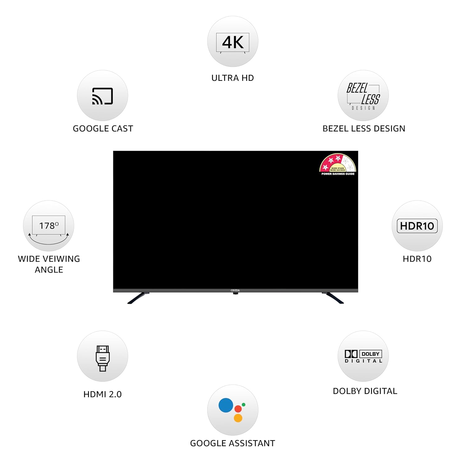 Onida’s ultra-thin bezel TV offers a sleek look and immersive, modern viewing experience.