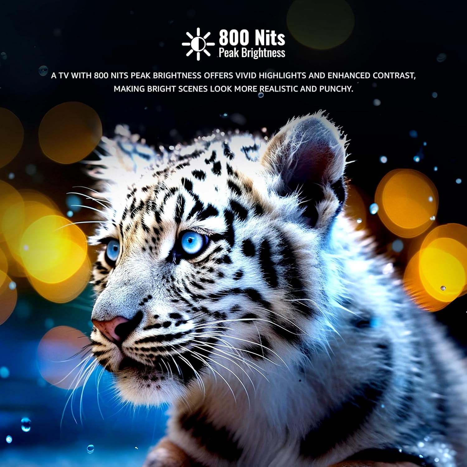 800 nits peak brightness delivers vivid HDR highlights, realistic contrast, and punchy visuals.