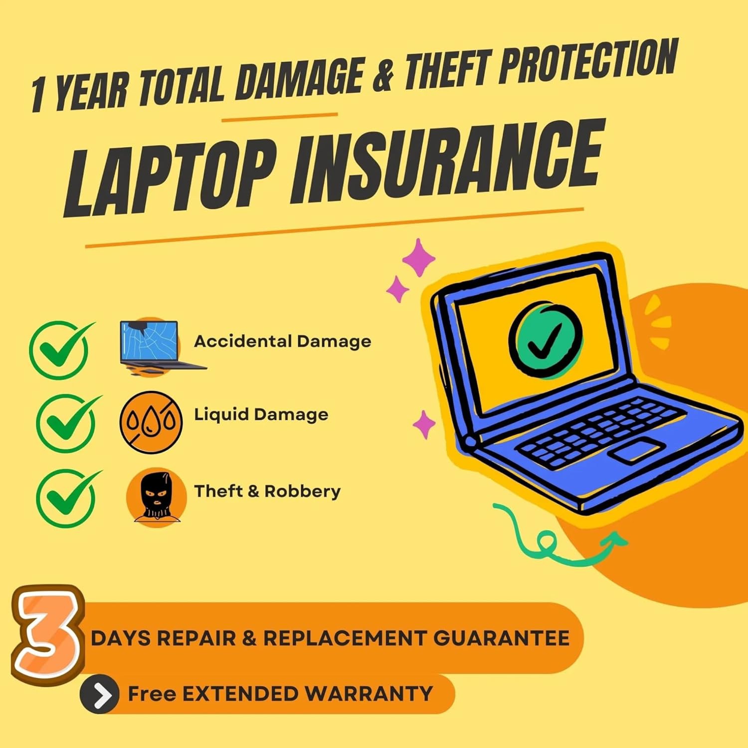 No more worries: Secure your laptop from any accidental, liquid damage and theft or robbery- digitally delivered in your registered e-mail within 24 hours. Paperless, Hasslefree Claim Process.
