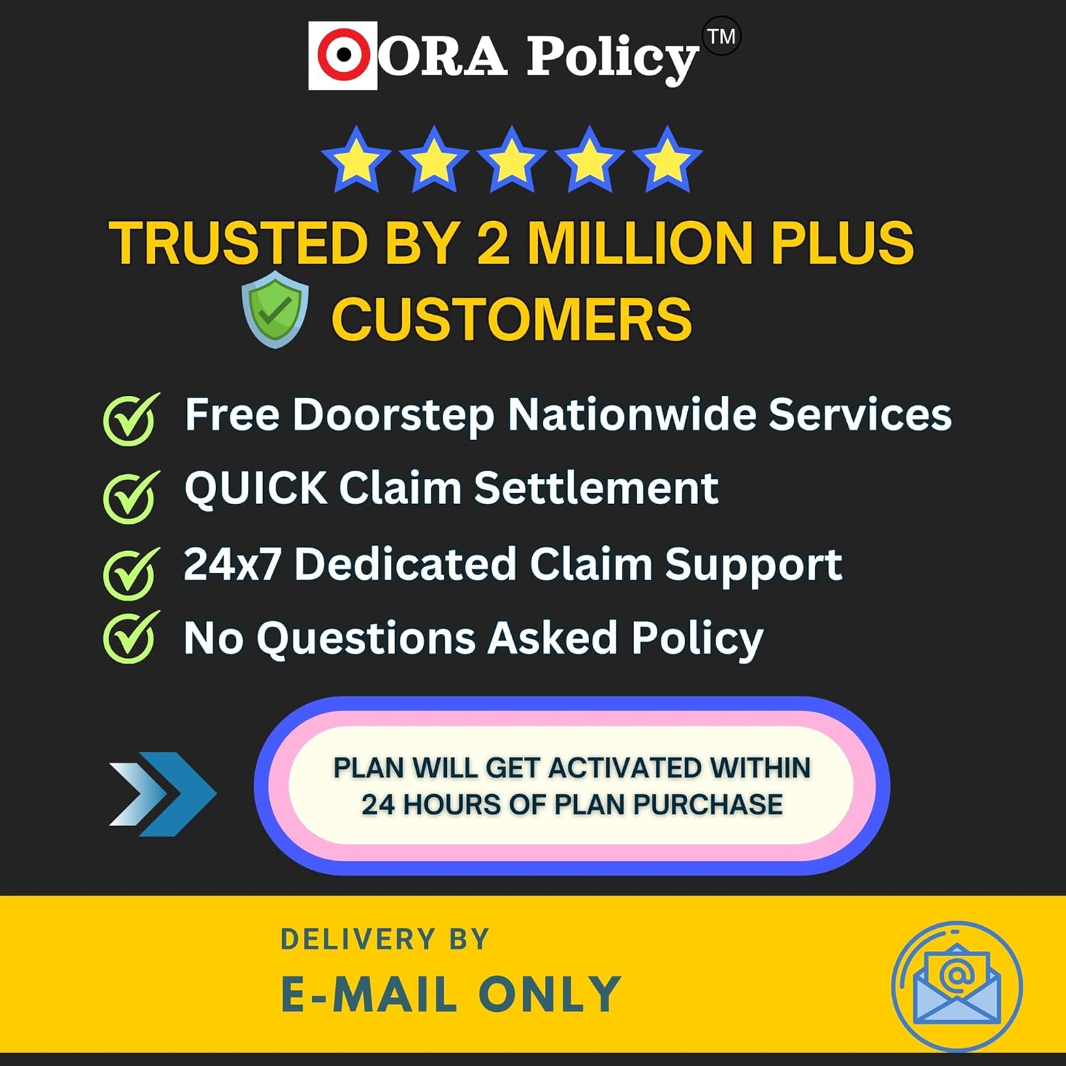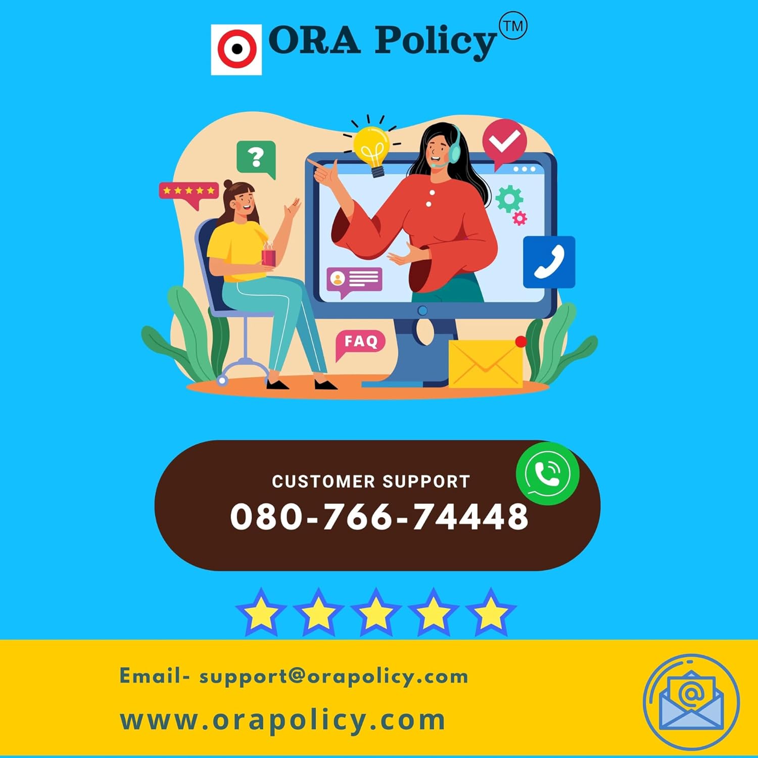 For your convenience: Easy Claim Process: Email us or Visit our website www.orapolicy.com, or Call our 24×7 operational customer support at 080-766-74448
