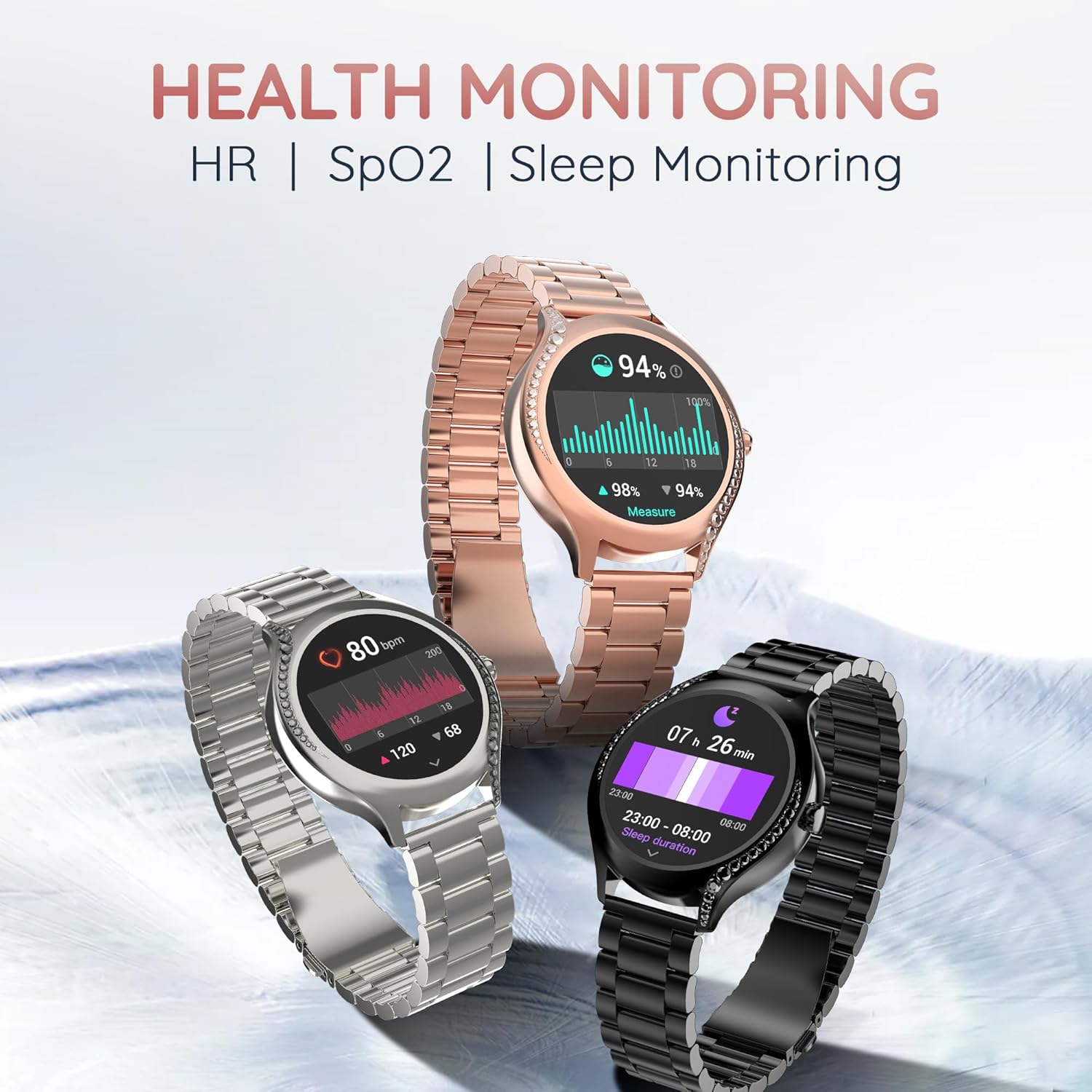 BT Calling, Female Health, Heart Rate Monitoring, Blood Oxygen Level, Sleep Monitor, Zen Mode, Multiple Watch Faces, AI Voice Assitance, Multiple Sports Mode, Alarm & Notification, Weather Info, Smart Calculator