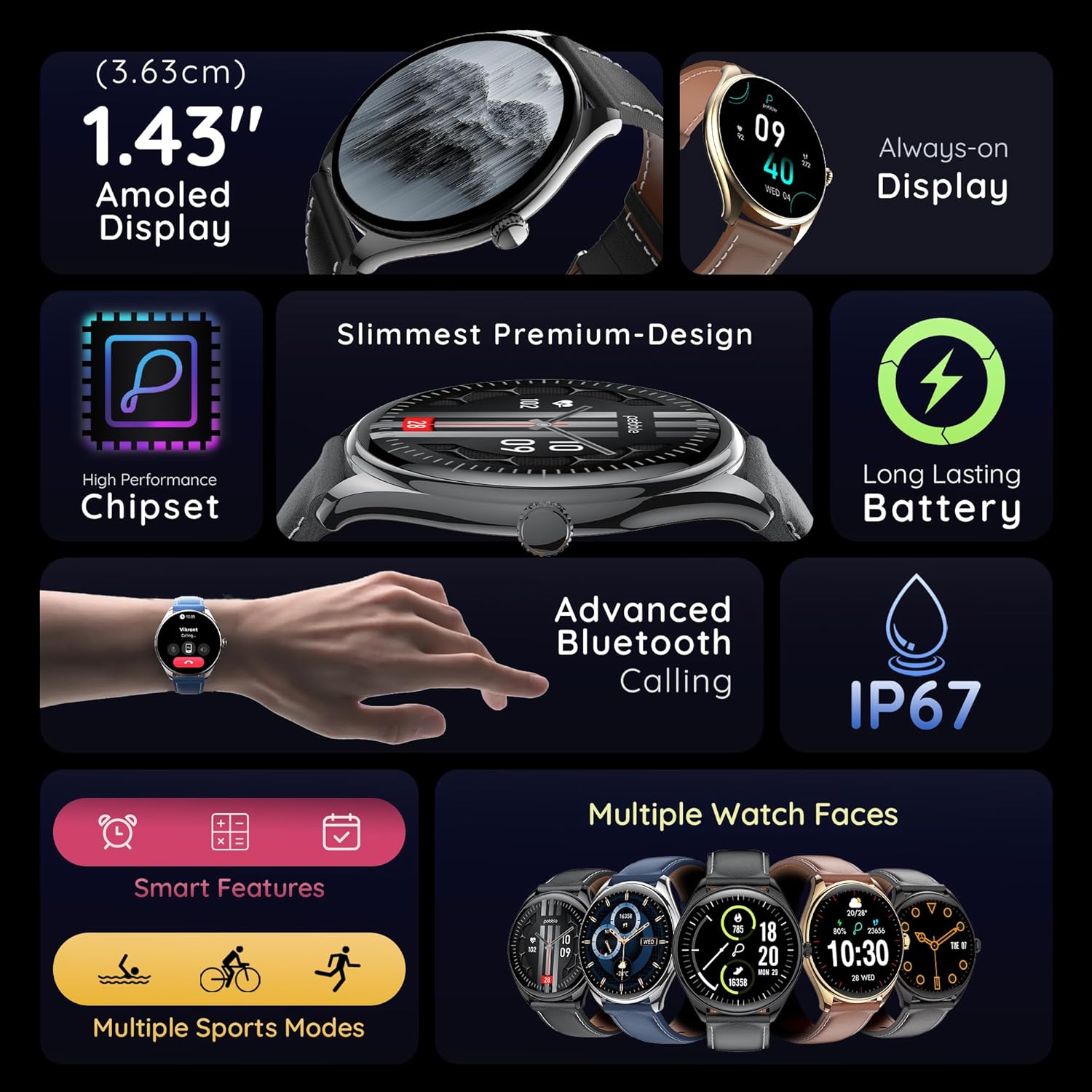 1.43″ AMOLED Display: Experience vibrant colors and sharp visuals with the high-definition AMOLED display.