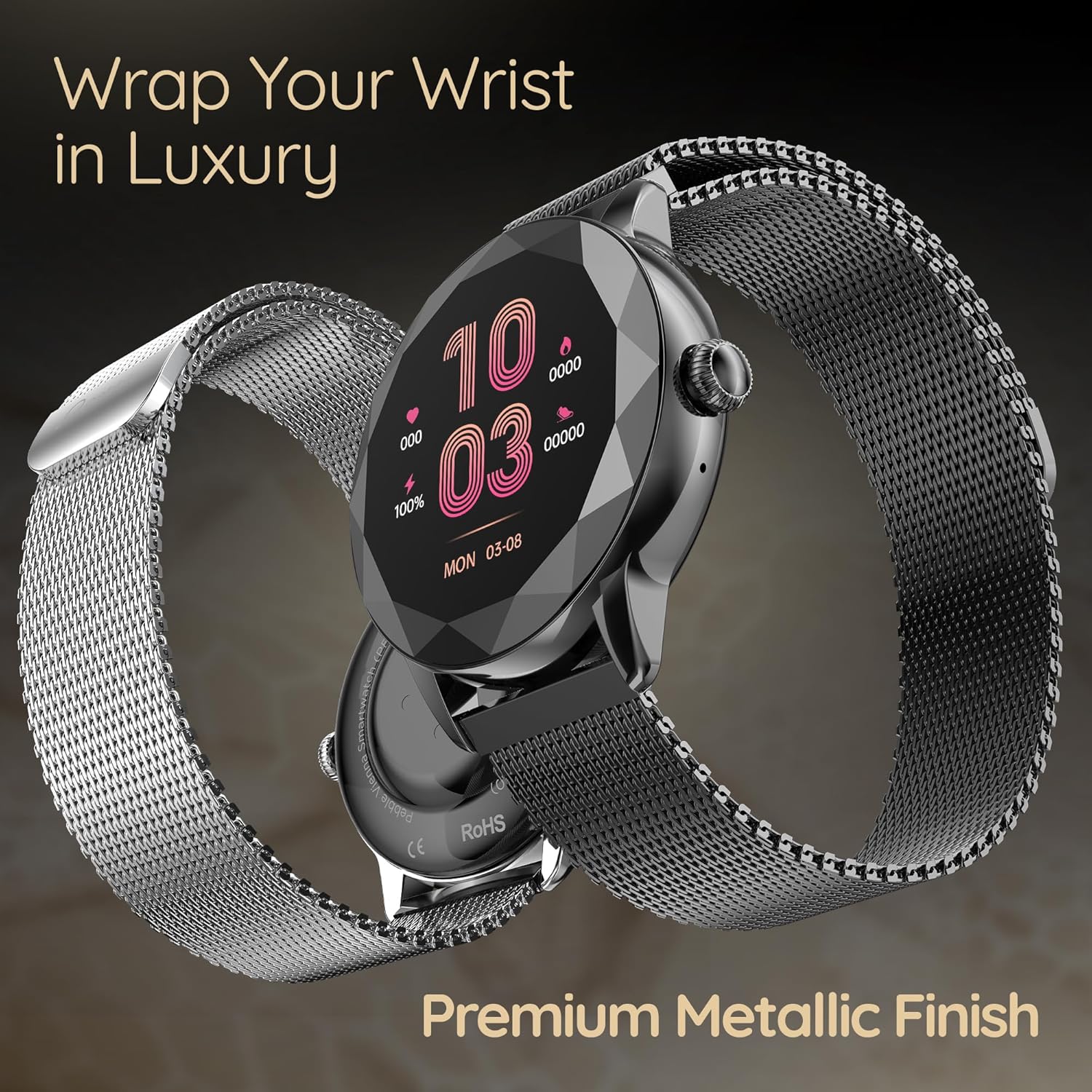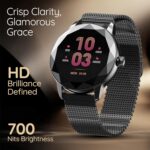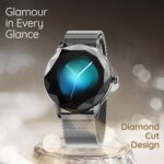 Pebble Vienna Smartwatch with HD Display, Diamond-Cut Design, Glossy Metallic Finish, Mesh Metal Strap, Female Health Monitoring, DIY Watch Faces – Classic Black