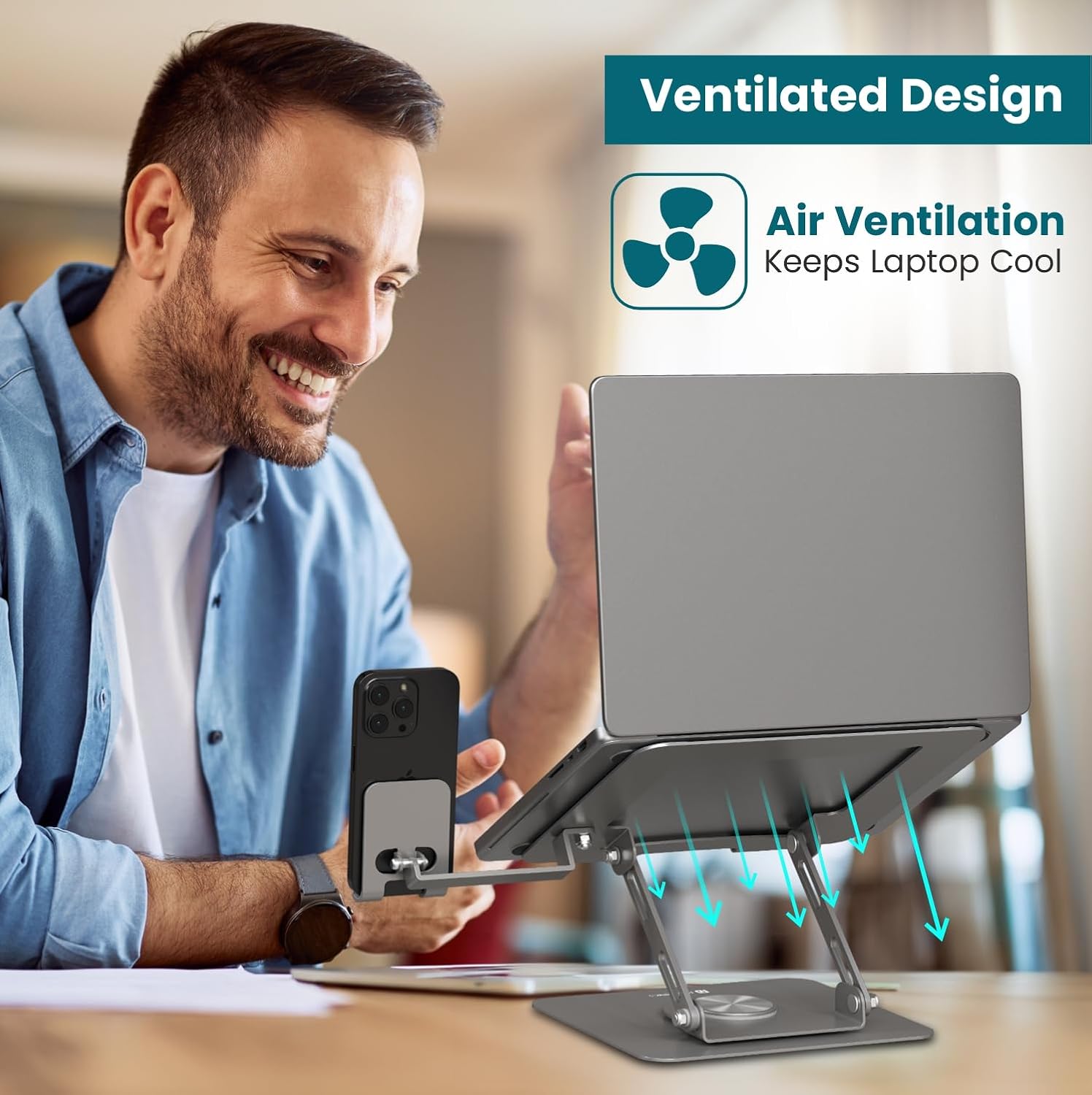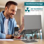 2-in-1 Laptop & Phone Stand: Keep your workspace clutter-free with this dual-purpose stand that holds both your laptop (up to 15.6″) and smartphone side-by-side for multitasking ease.