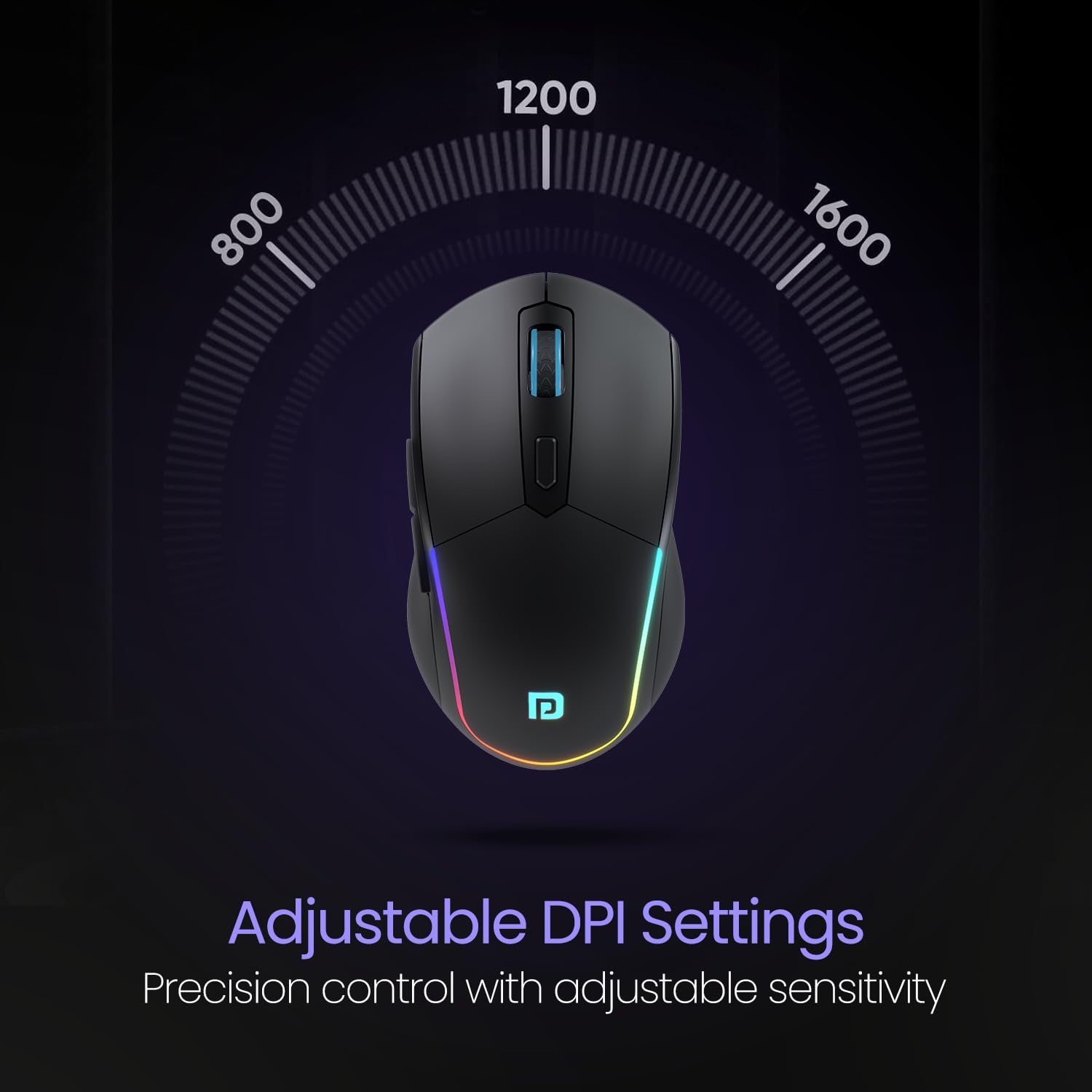Portronics Toad One Bluetooth Mouse with 2.4 GHz & BT 5.3 Dual Wireless, 6 Buttons, Rechargeable, RGB Lights, Connect 3 Devices, Ergonomic Design for Laptop, Smartphone, Tablet (Black)