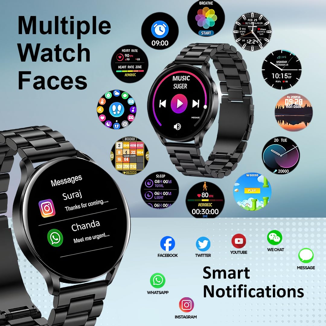 Customers praise the smartwatch’s sleek design, bright 1.3″ HD display, and accurate heart rate monitoring. They appreciate its functionality, with one customer noting there’s no lag or sync delay, and find it good value for money. The Bluetooth calling feature works smoothly with clear sound, and one customer mentions it pairs effortlessly with both Android and iOS devices. While some customers report amazing battery life, others experience charging issues.
