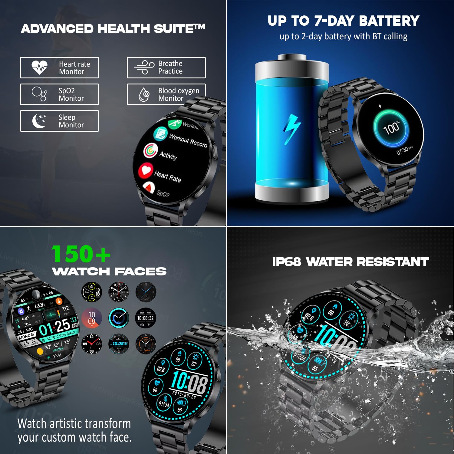 【Comprehensive Health Monitoring】: Track your heart rate in real-time and analyze sleep quality. Monitor daily steps, distance, calories burned, and more with 24-hour fitness tracking.