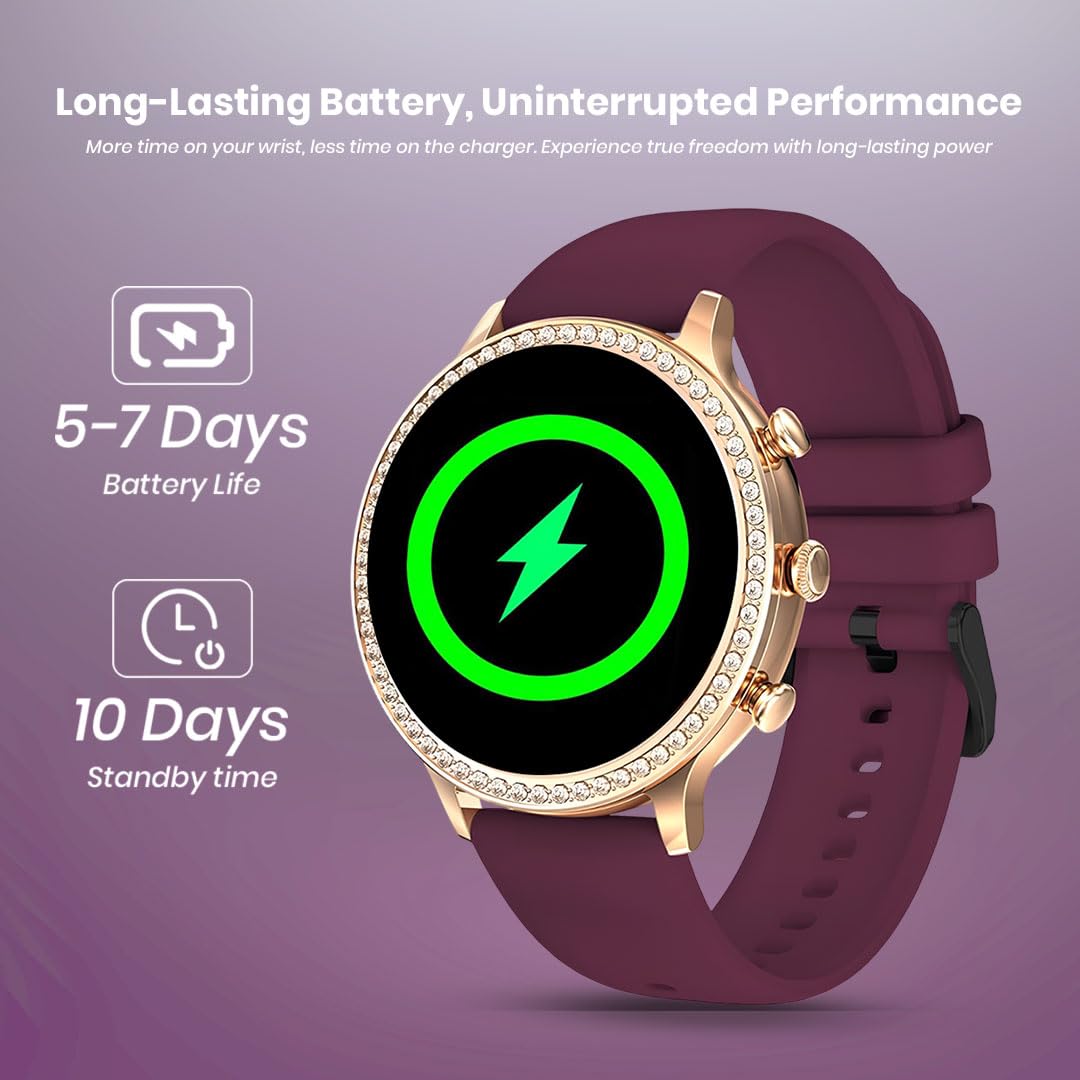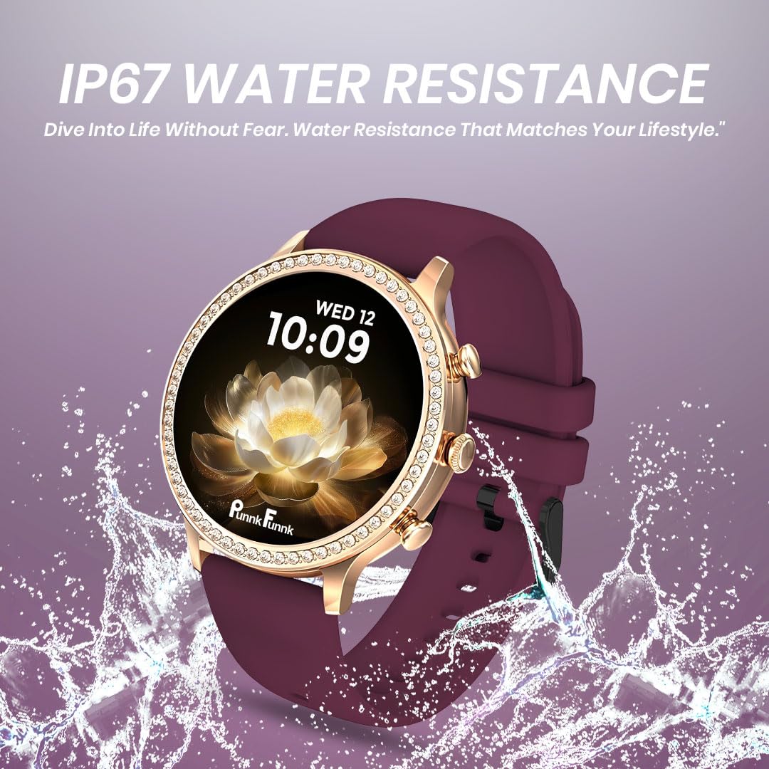 PunnkFunnk GenDiva Smart Watch for Women, 1.69″ AMOLED Display, Bluetooth Calling, 100+ Sports Modes, Heart Rate & SpO2 Tracker, Sleep Monitor (GenDiva Maroon, Maroon)