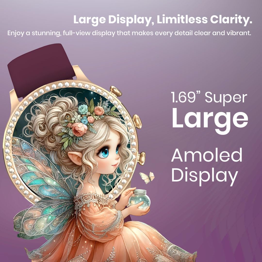 🌈 1.69″ AMOLED Display & Sleek Design: Enjoy vibrant visuals with a stunning 1.69” HD AMOLED display featuring always-on mode and wrist-raise screen. Ultra-slim body with premium breathable strap ensures comfort and fashion for all-day wear.