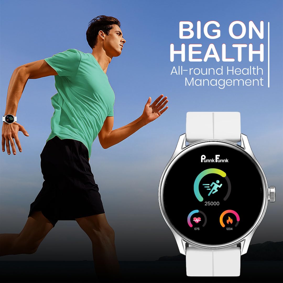 PunnkFunnk Glavito Round Dial Smartwatch 1.49″ AMOLED Display, 100+ Sports Modes, IP67, Health Tracking, Bluetooth Calling, Crown Control, 100+ Watch Faces for Men & Women (Magnetic White)