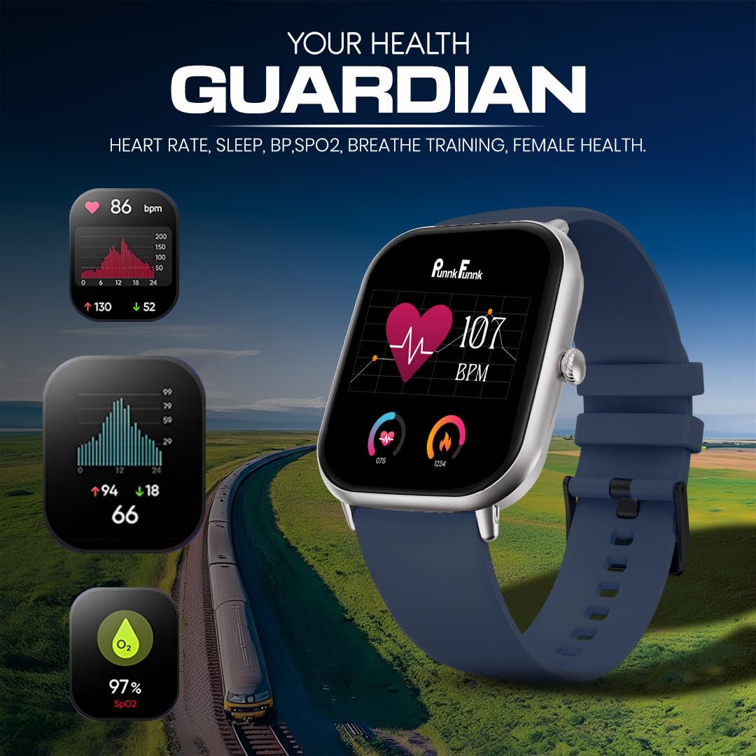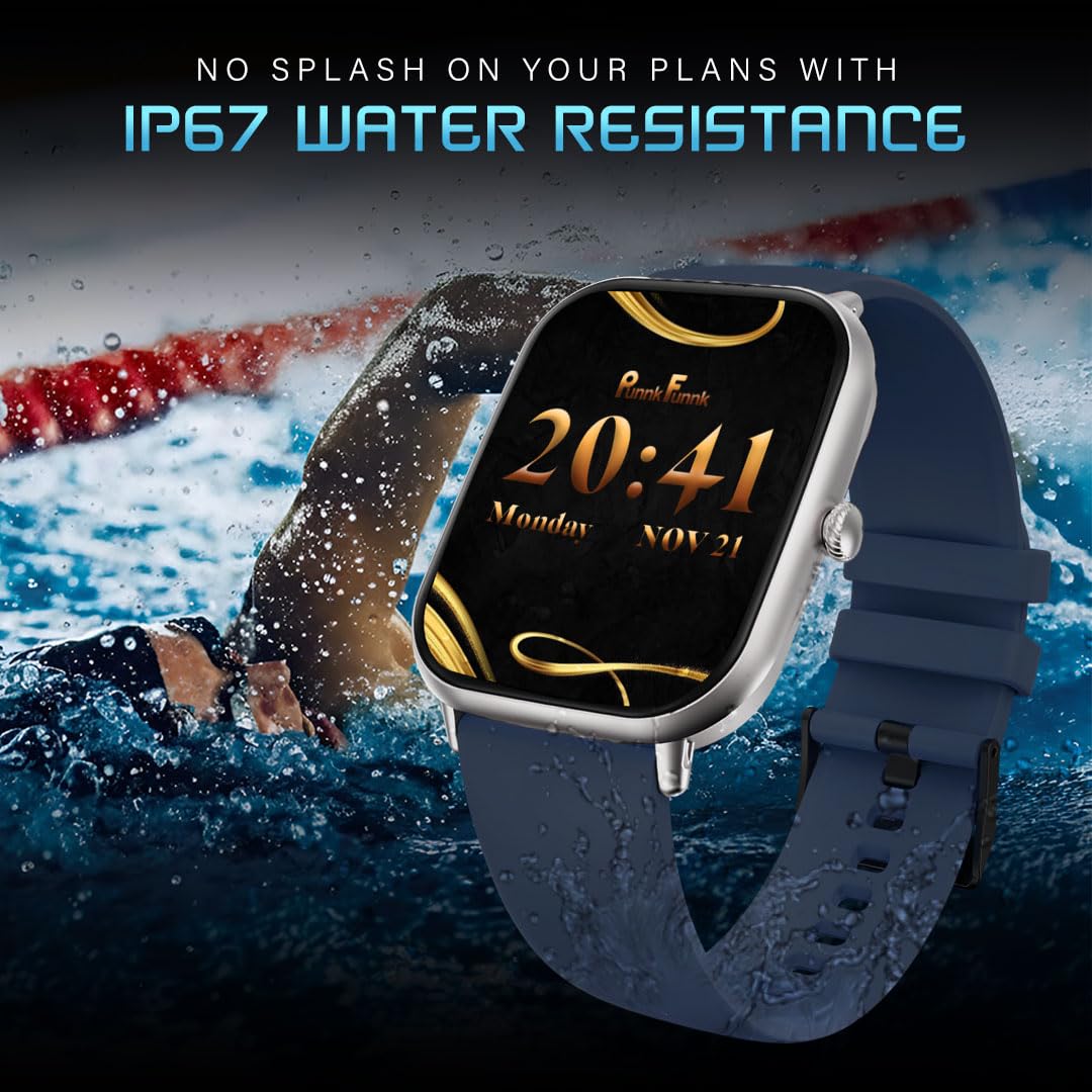 PunnkFunnk H18 Pro Smartwatch for Men & Women | 2.01″ HD TFT Display | Bluetooth Calling | Heart Rate & SpO2 Monitor | Long Battery Life | IP67 Fitness Watch with Multiple Sports Modes- (Dark Blue)