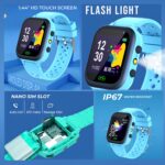 PunnkFunnk Kids Smart Watch 1.44″ TFT Display, 4G Sim Card Phone with Long-Lasting Voice Call, Kids GPS, Music Player, Alarm Clock, Games, & IP67 Waterproof(Black)(Made by MELBON)