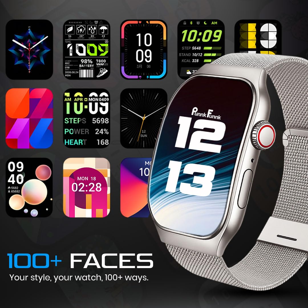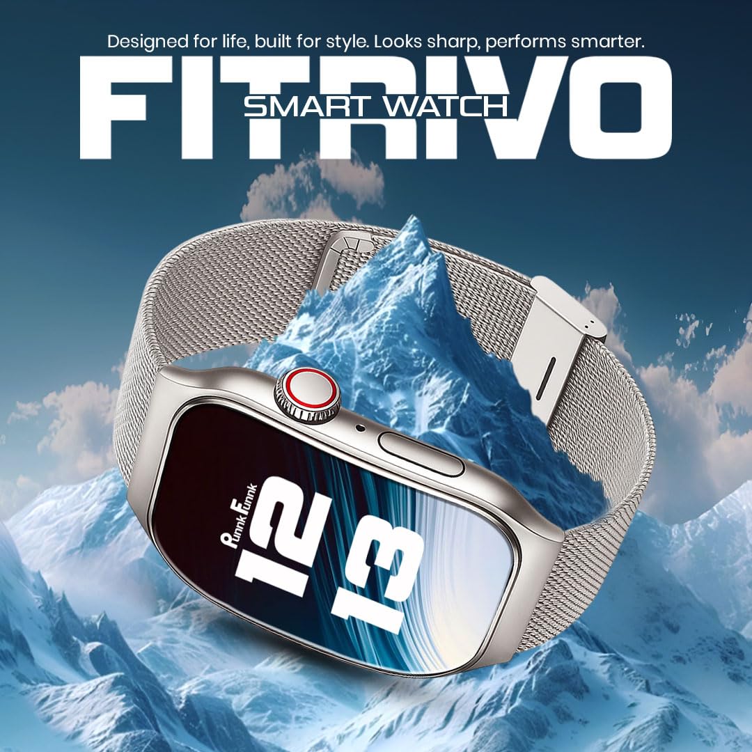 PunnkFunnk Newly Launched Fitrivo SmartWatch 2.01″ Curved AMOLED Display, 100+ Watch Faces, Crown Control, 100+ Sports Modes, Bluetooth Calling, IP67, for Men & Women (Millanese Silver)